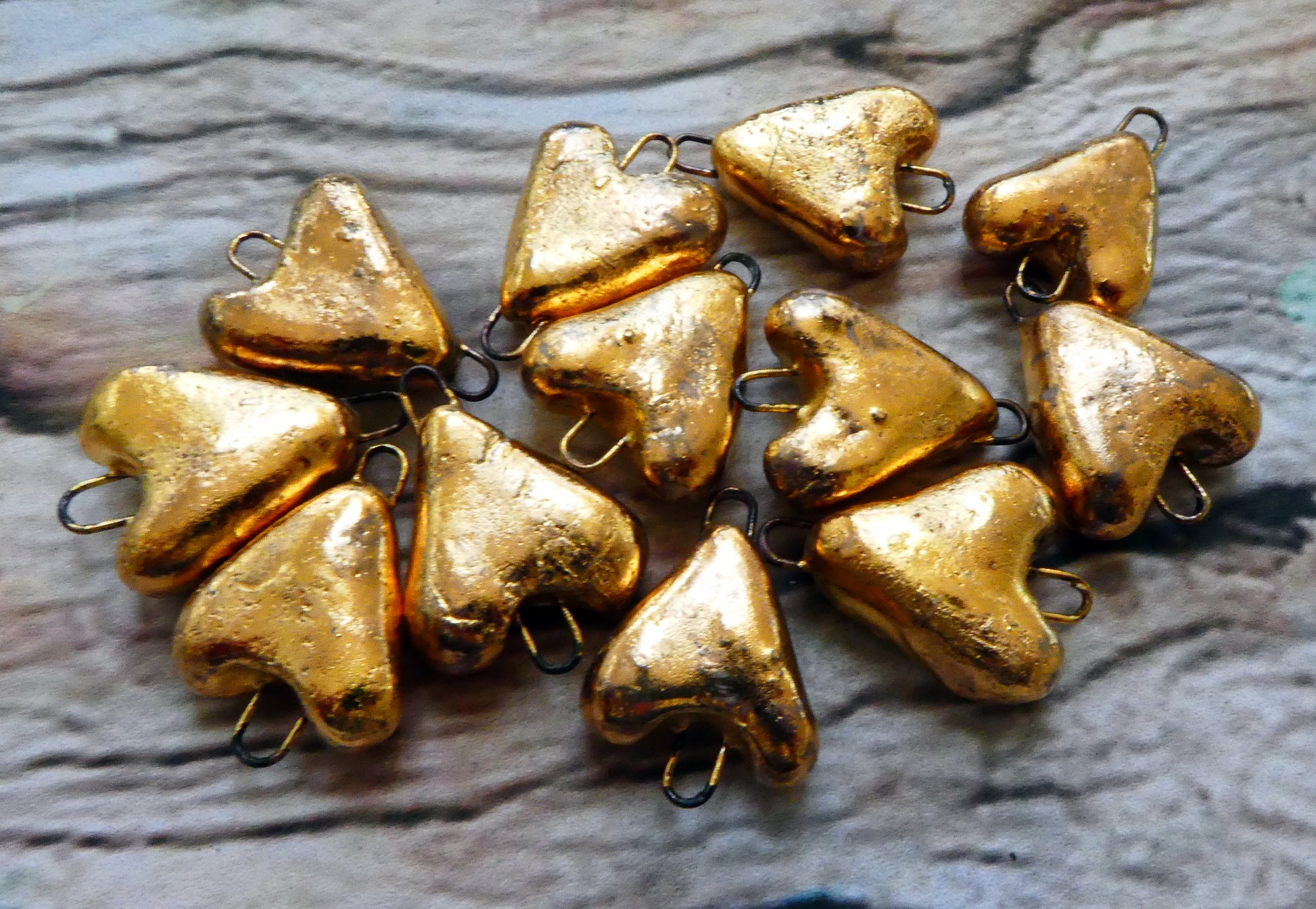Ceramic Little Heart Connectors -Gold Lustre