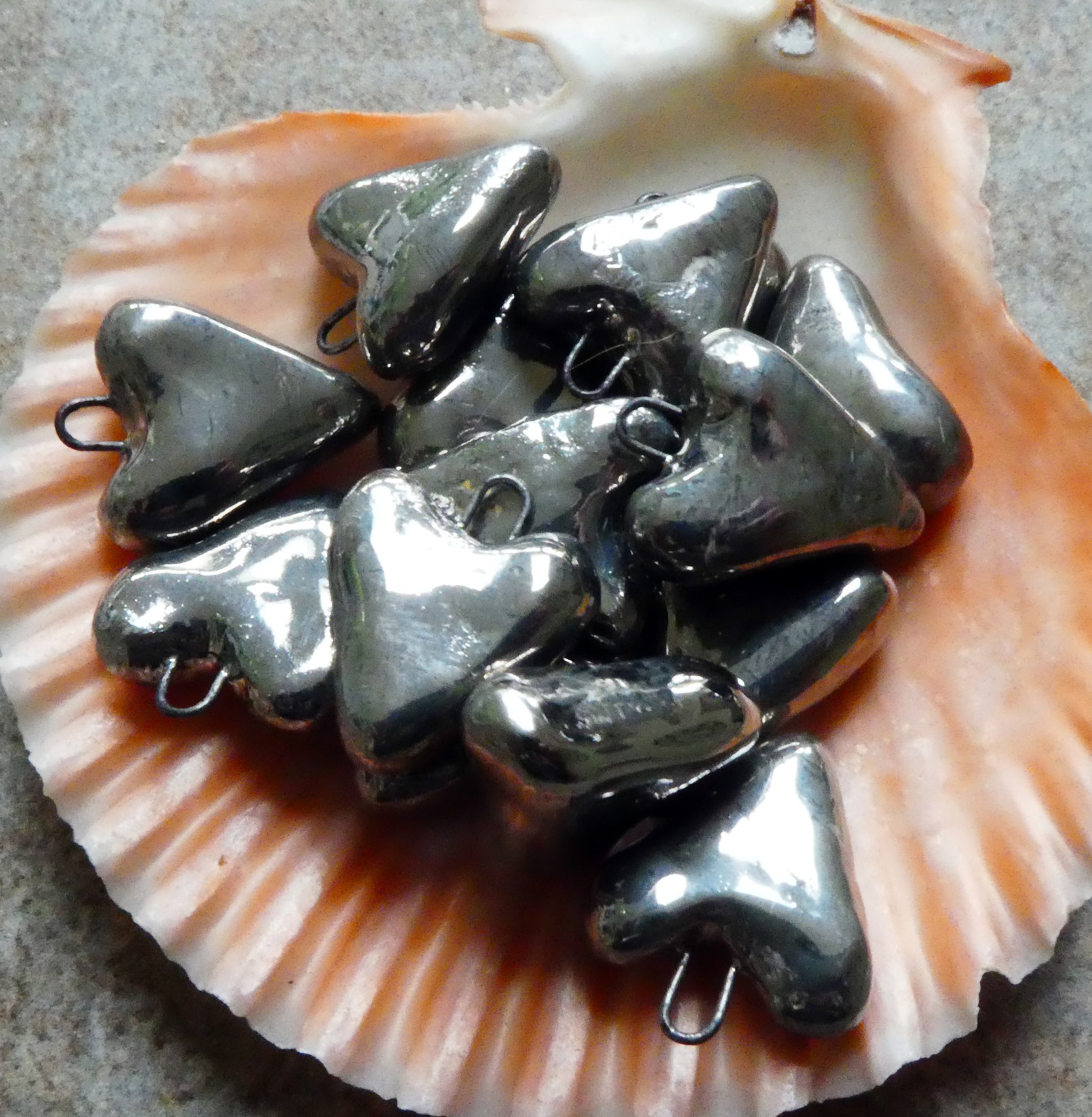 Hand formed in Earthstone and fired with Gloss glaze. Then fired again with Platinum Lustre.