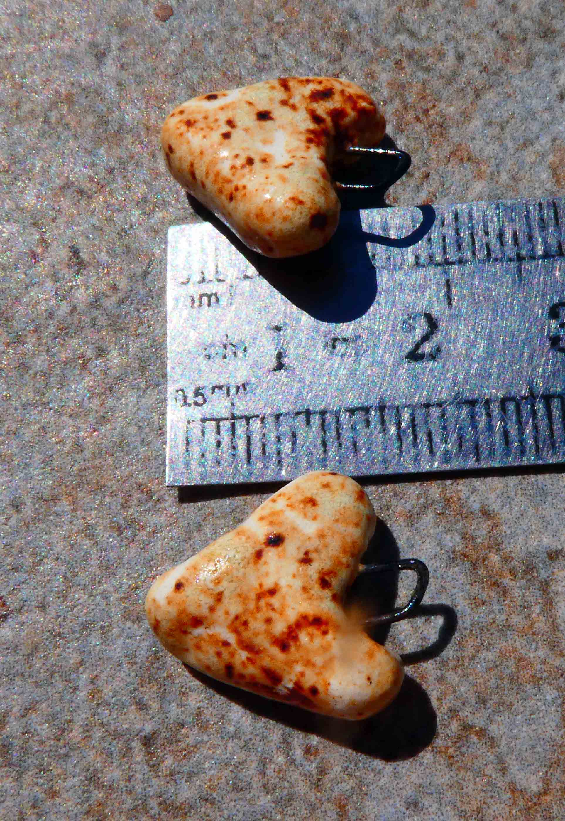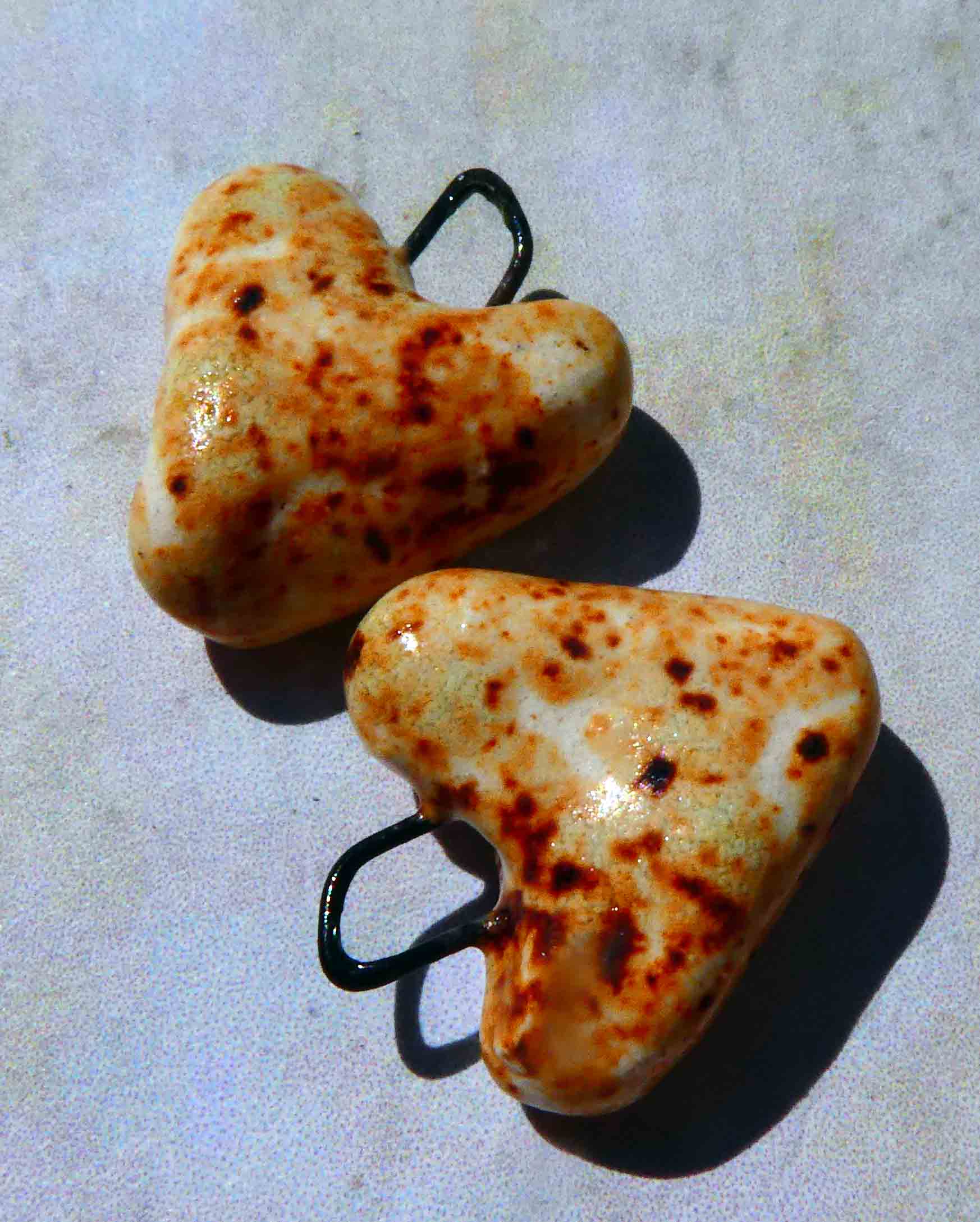 A pair of ceramic little heart drops.