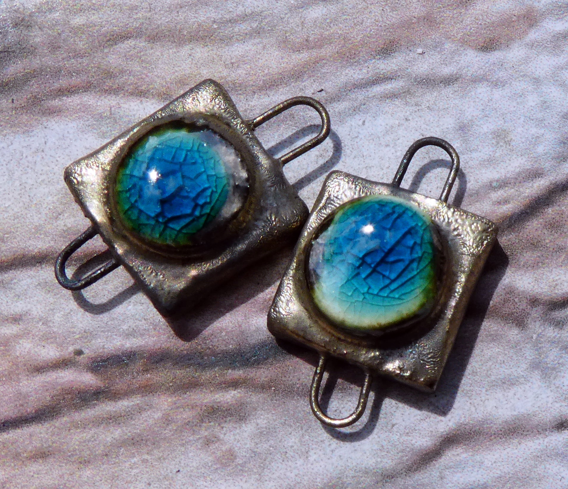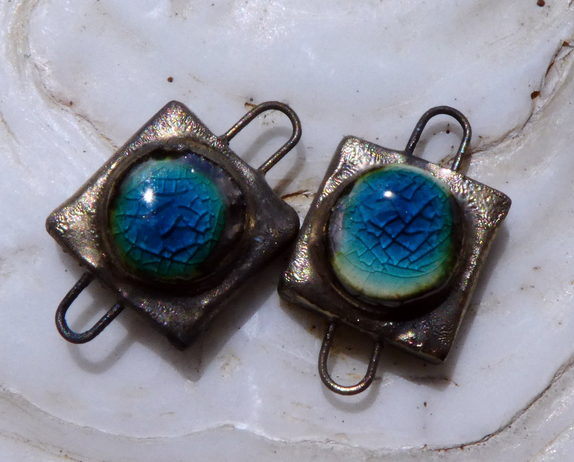 Ceramic Little Moulded Square Connectors -Oriental Blue