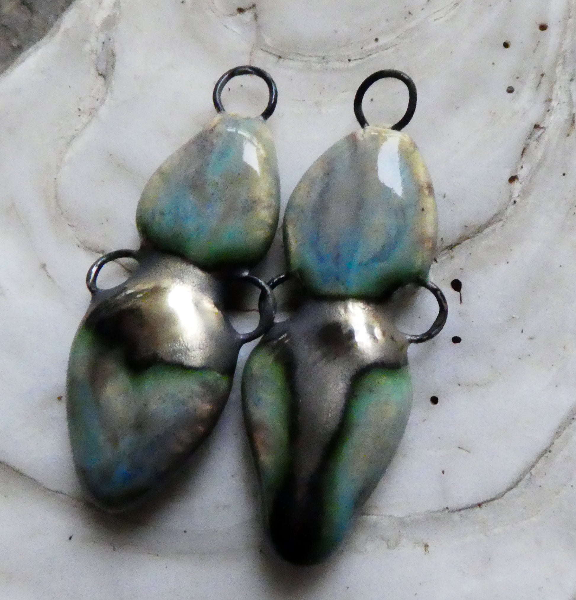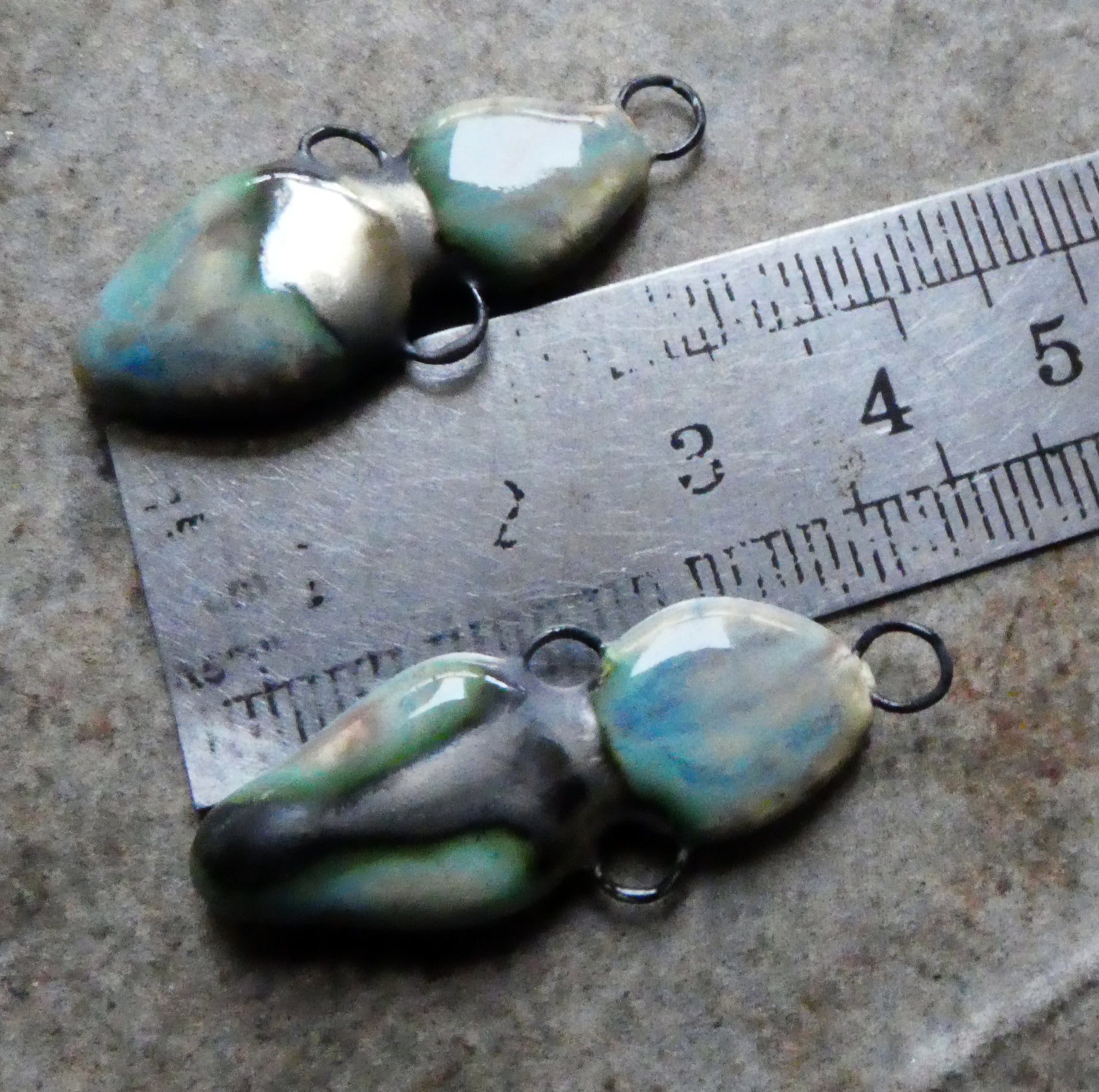 Ceramic Double Drop Earring Connectors - Blue Agate