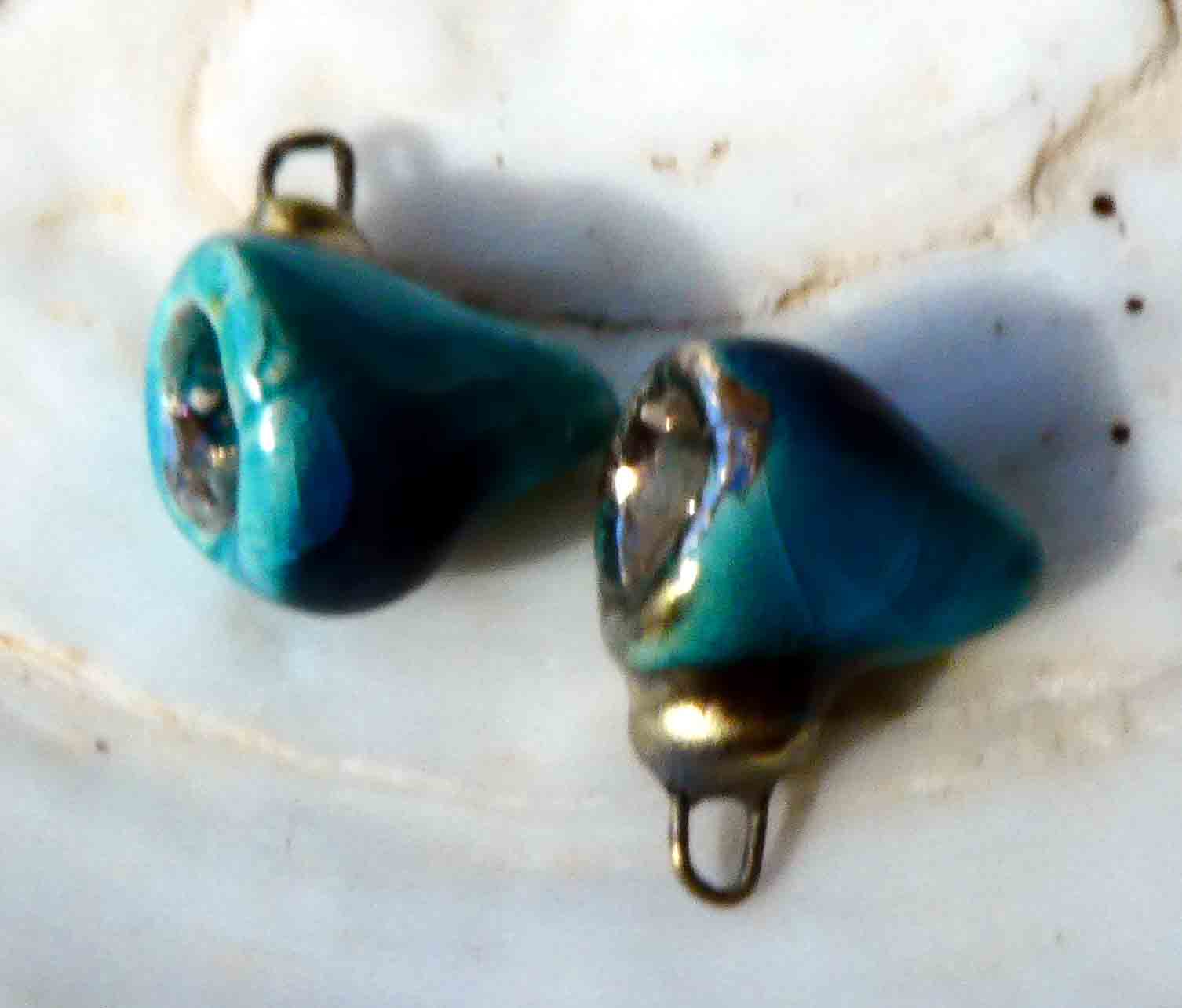Ceramic Lustre Cones Earring Charms -Topaz and Platinum