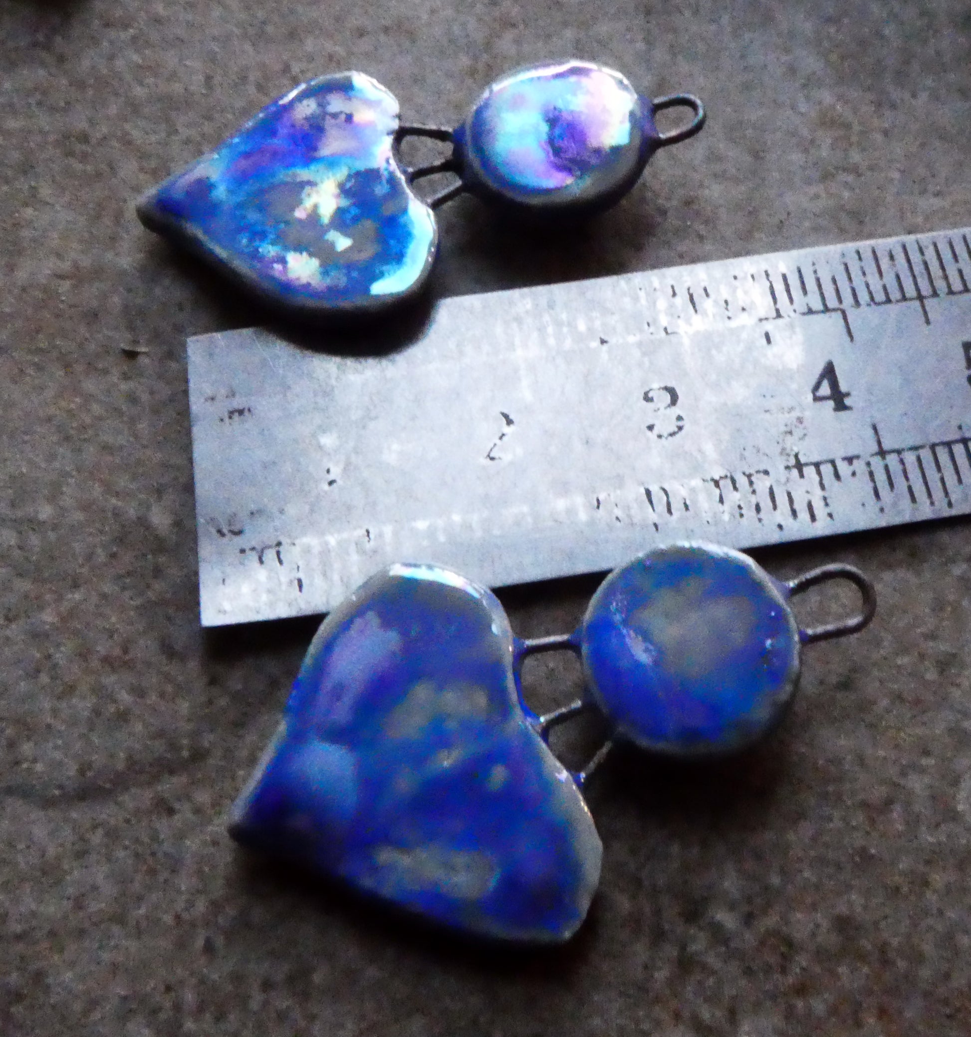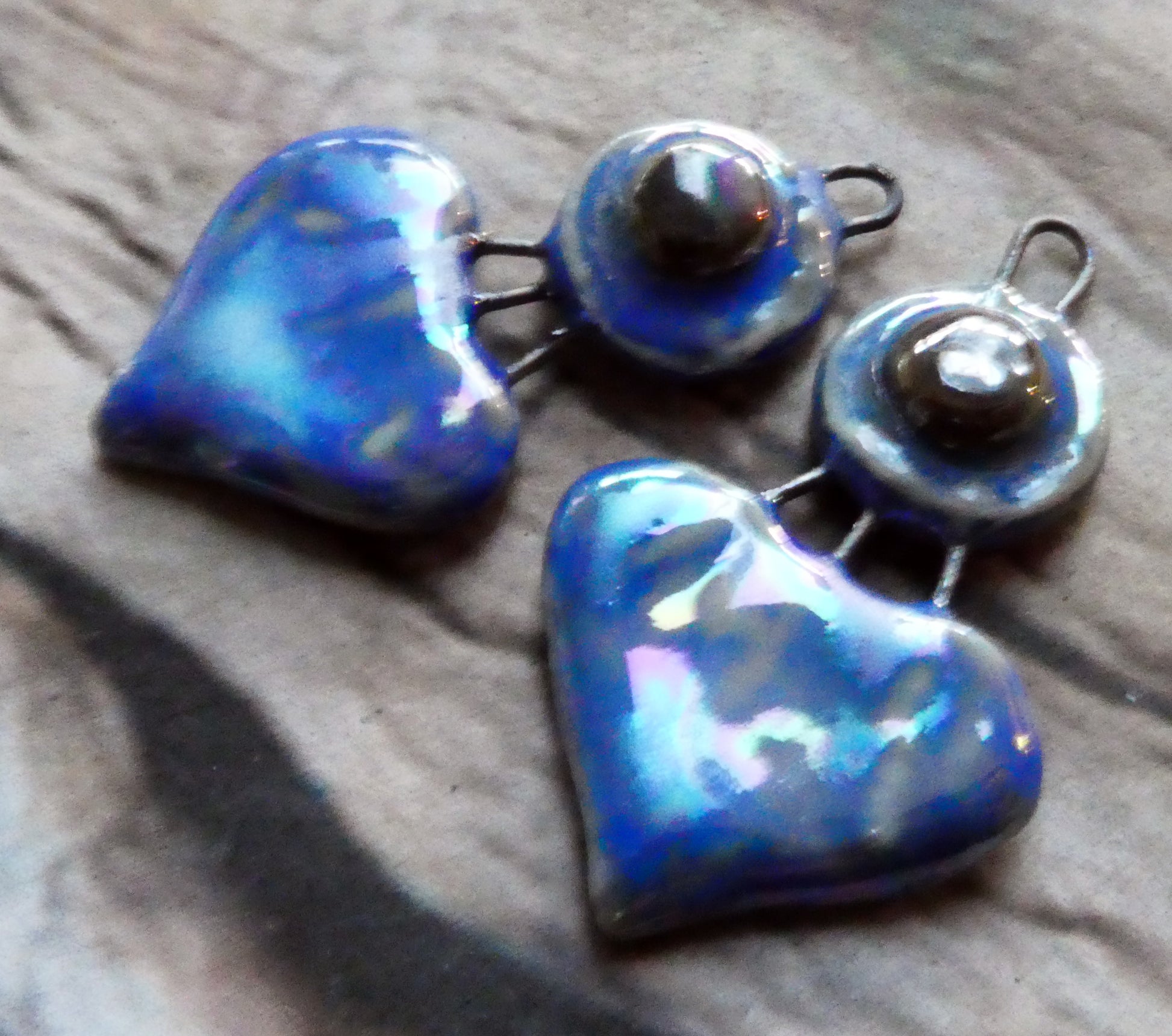 Hand formed in Earthstone and high fired. Then fired again with bronze clay and Soft Blue glaze. Applied with Mother of Pearl lustre, and fired again.
