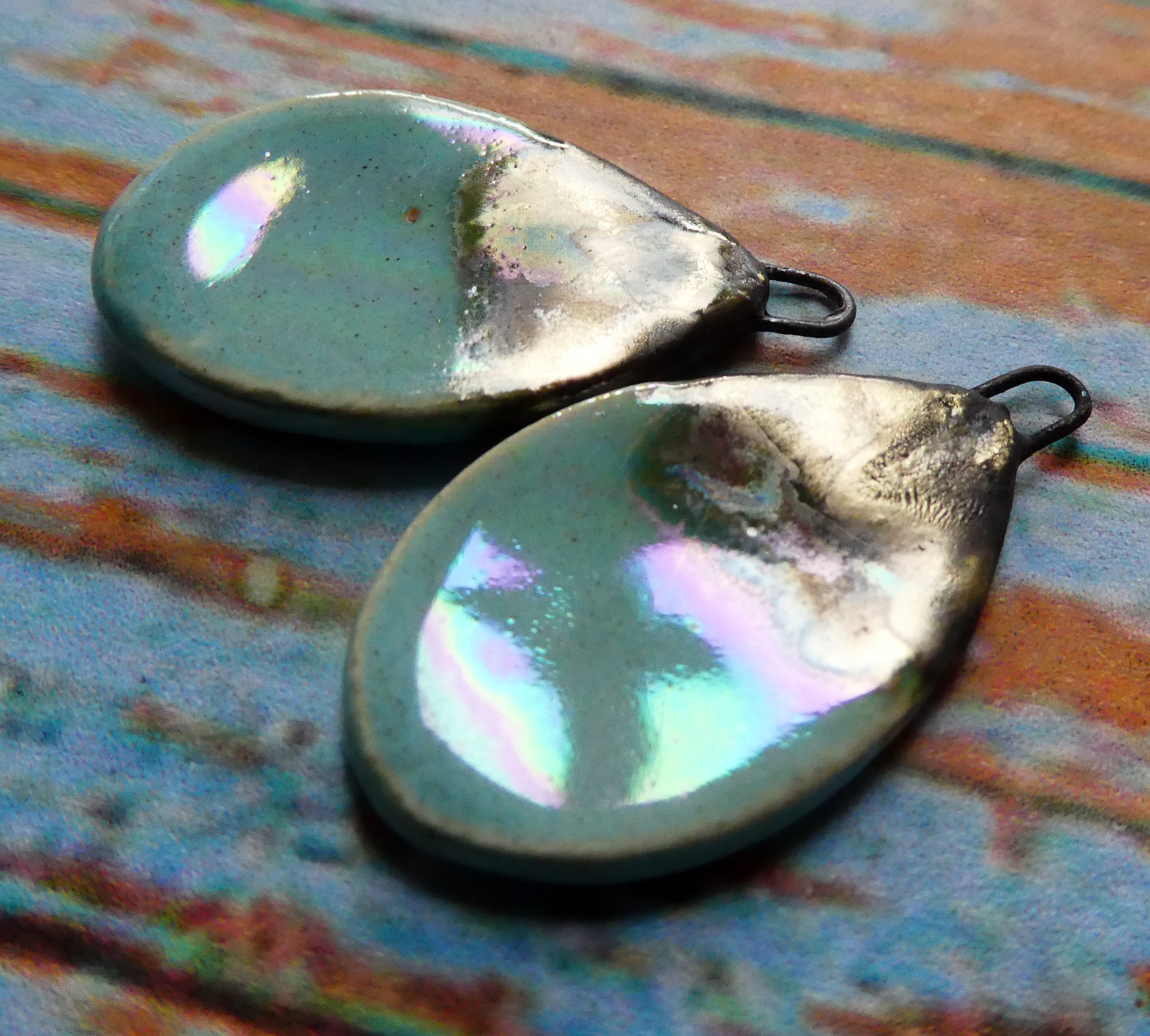 Ceramic Lustrous Flat Teardrop Drops -Larimar