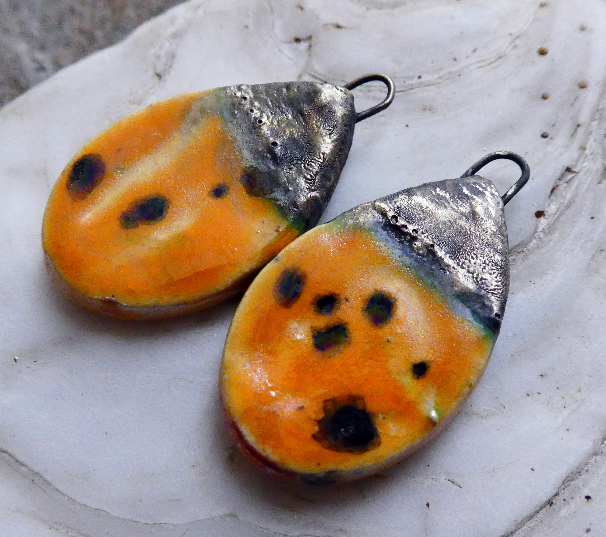 Ceramic Lustrous Flat Teardrop Drops - Papaya