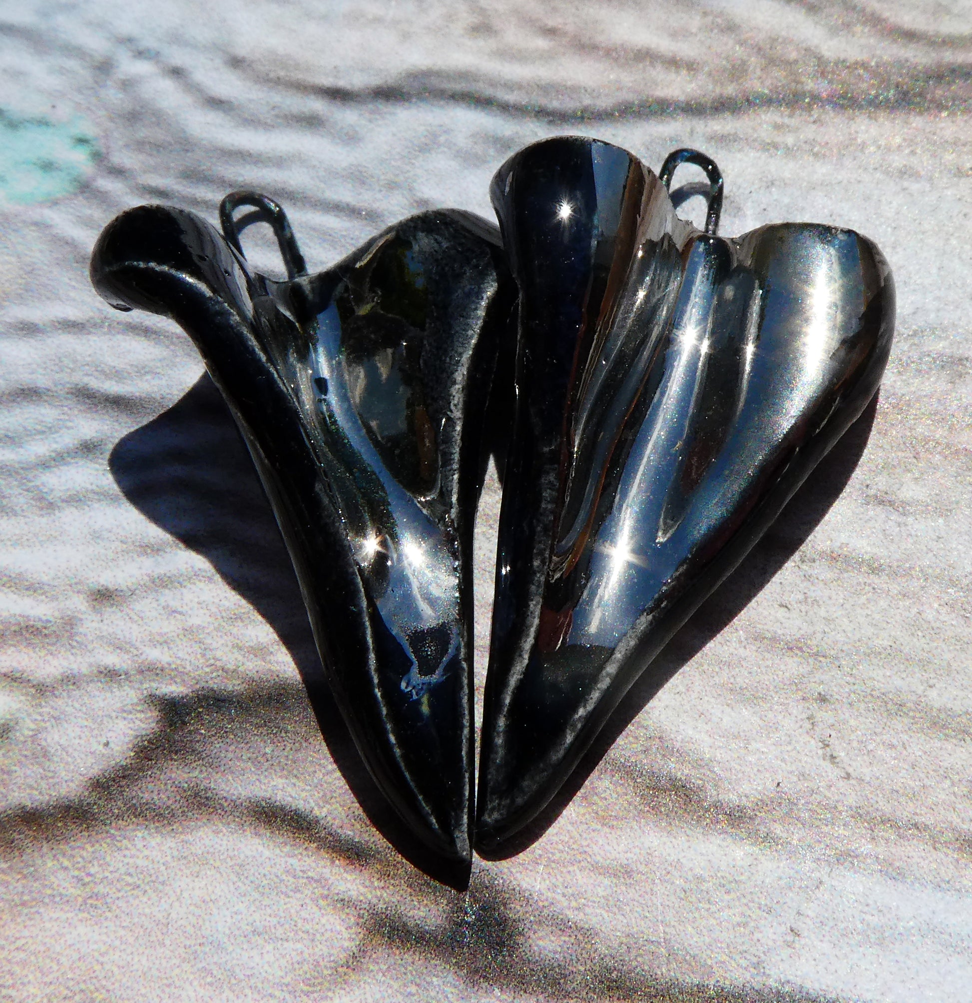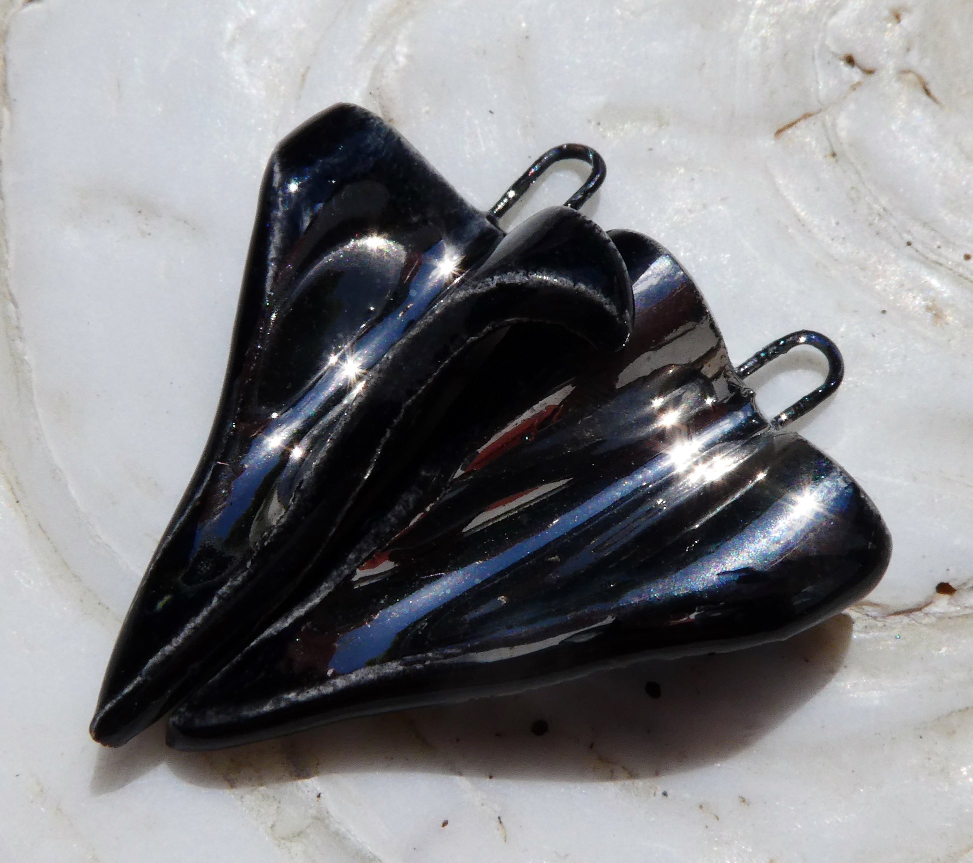 Hand formed in Earthstone and high fired. Applied with Black and Gloss glaze and fired again. Applied with Platinum lustre, and fired once more.