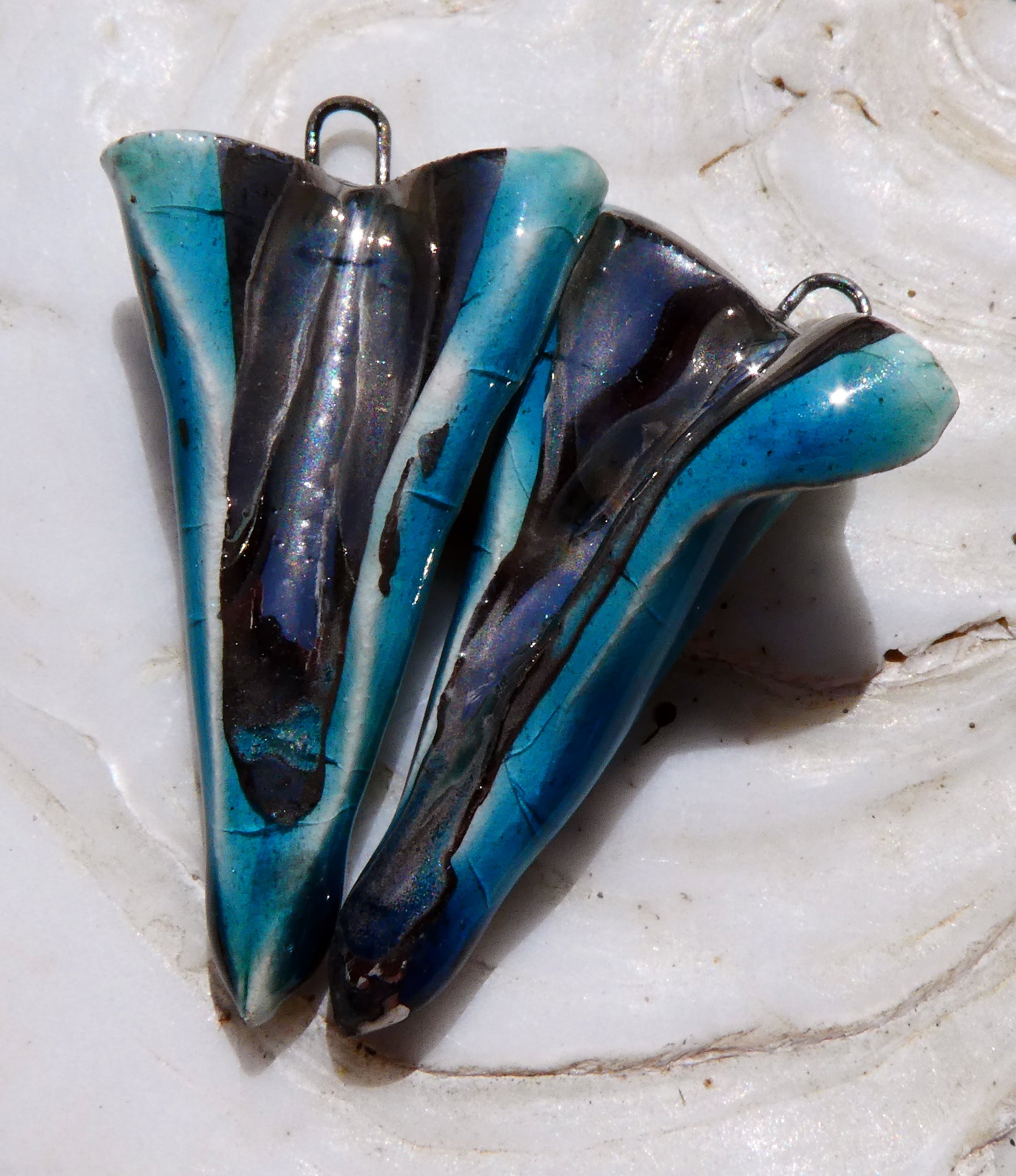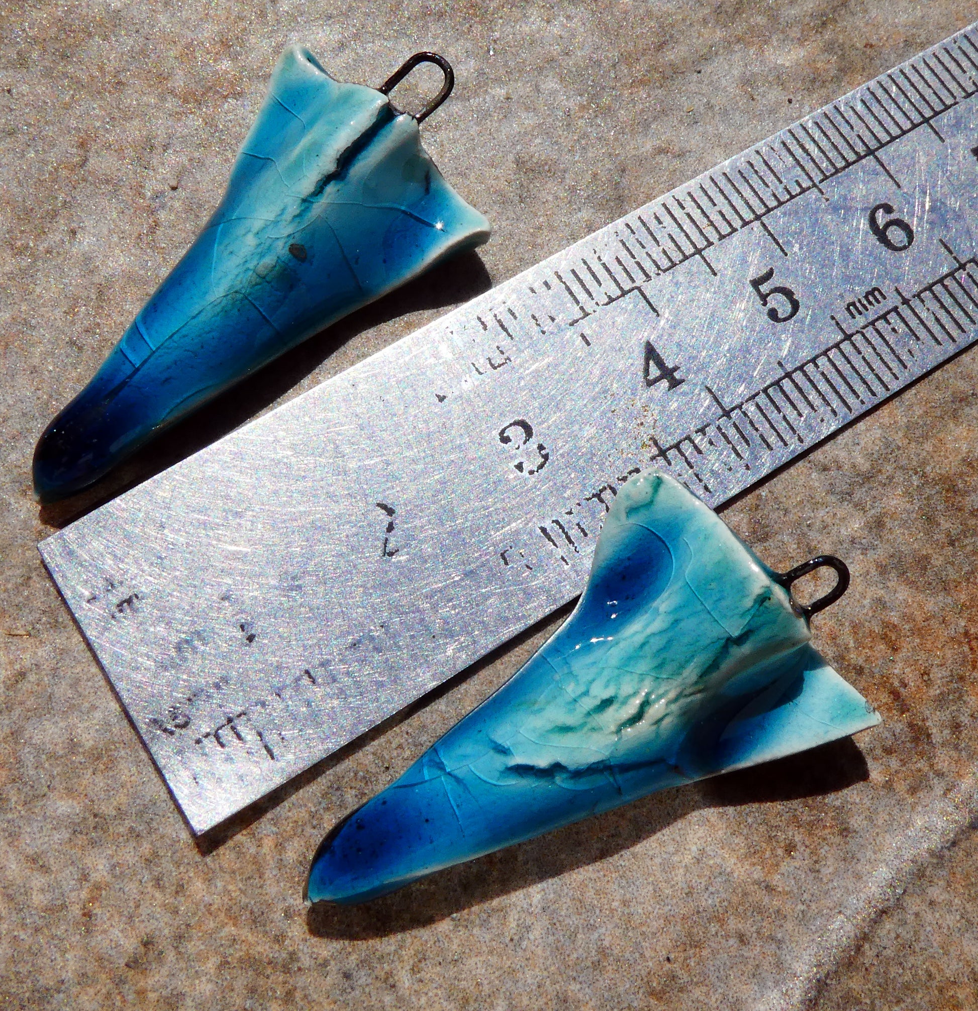 Ceramic Lustrous Folded Dagger Charms- Oriental Blue