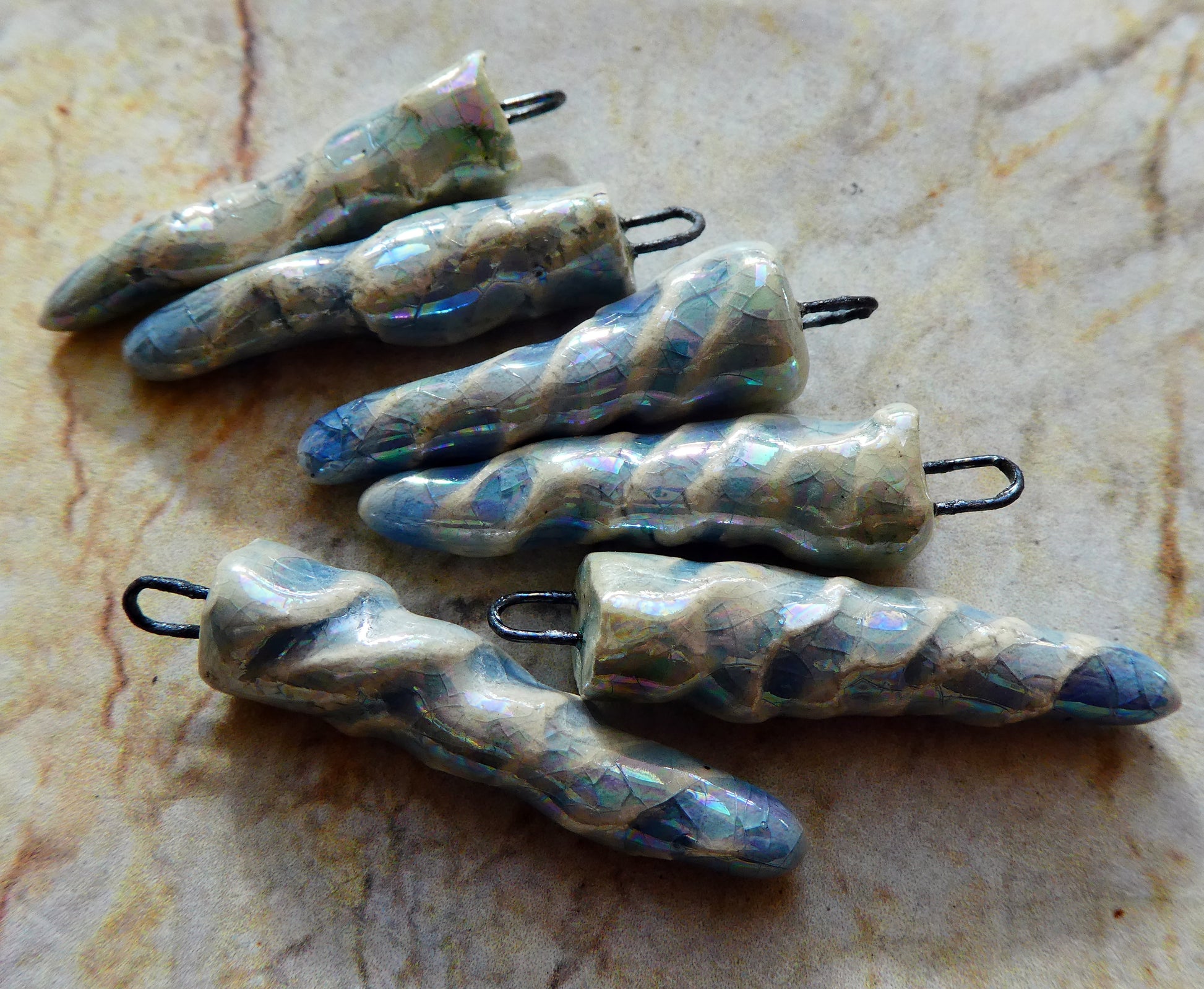Ceramic Lustrous Icicle Earring Charms - Moonscape Crackle