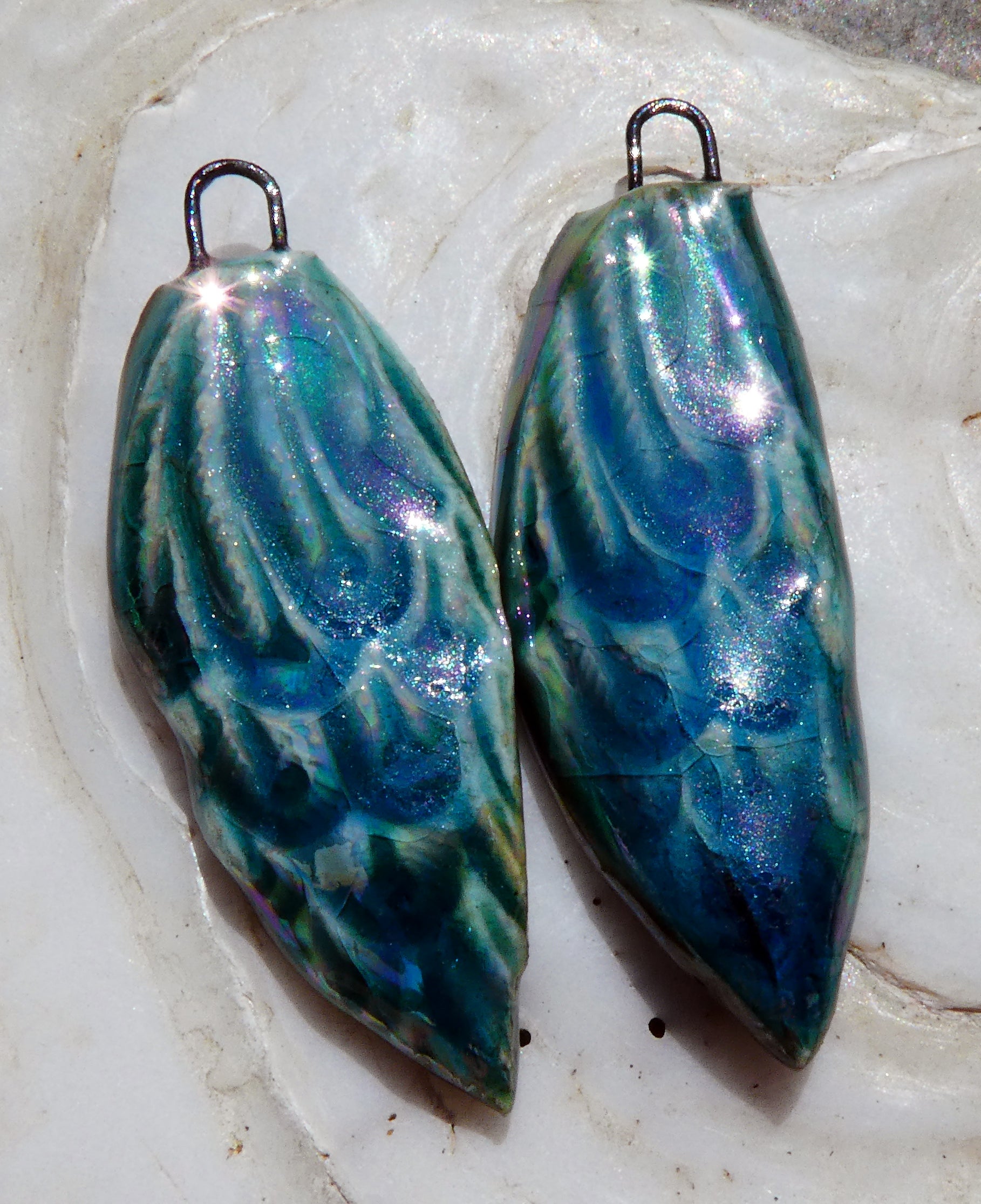 Ceramic Lustrous Peacock Tail Charms- Oriental Blue