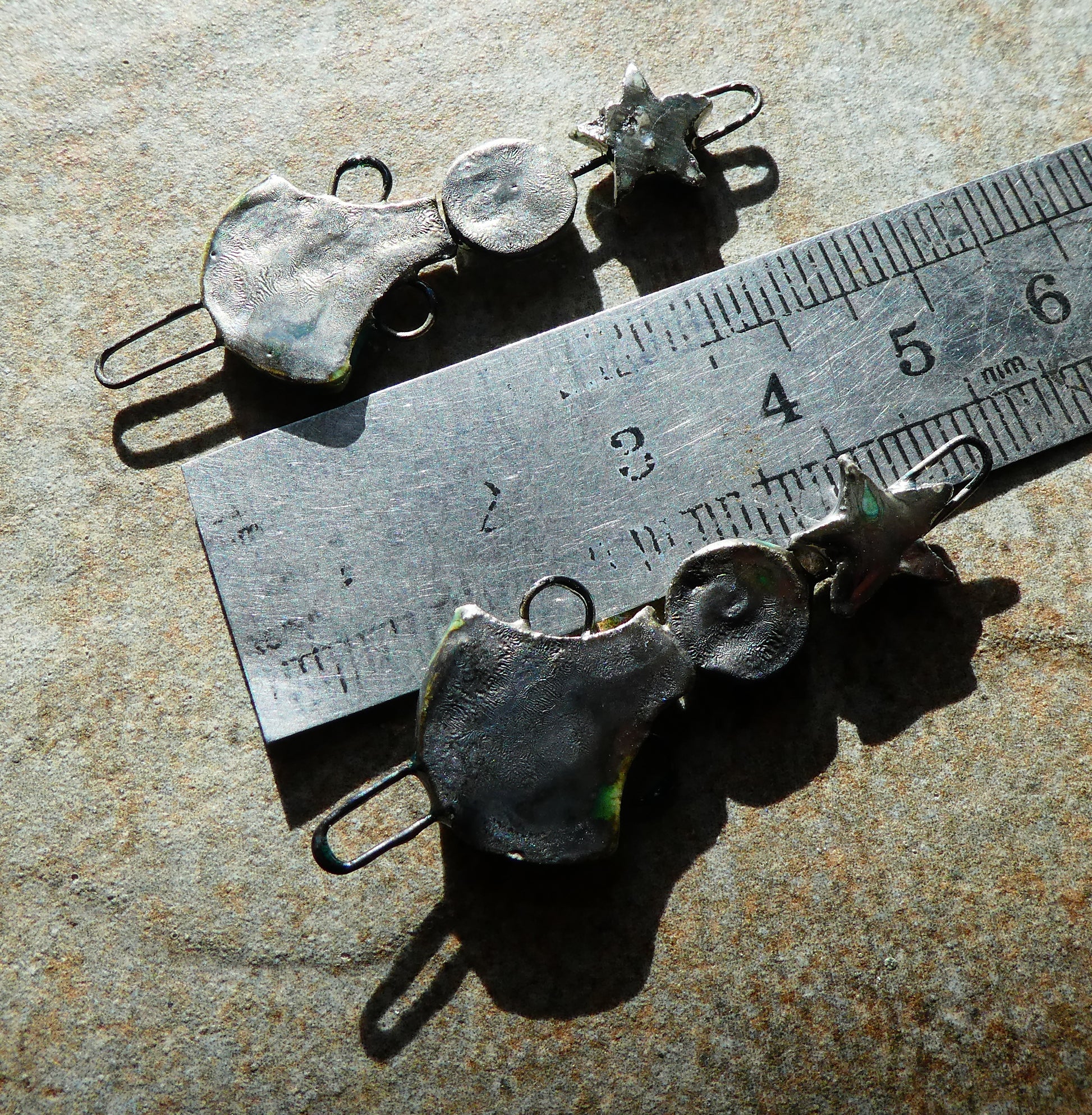 Hand formed in Earthstone and high fired.. Then fired again with bronze clay and Oxide. Applied with Morganite and Gloss glaze, and fired again. Then applied with Gold and Mother of Pearl Lustre and fired once more.