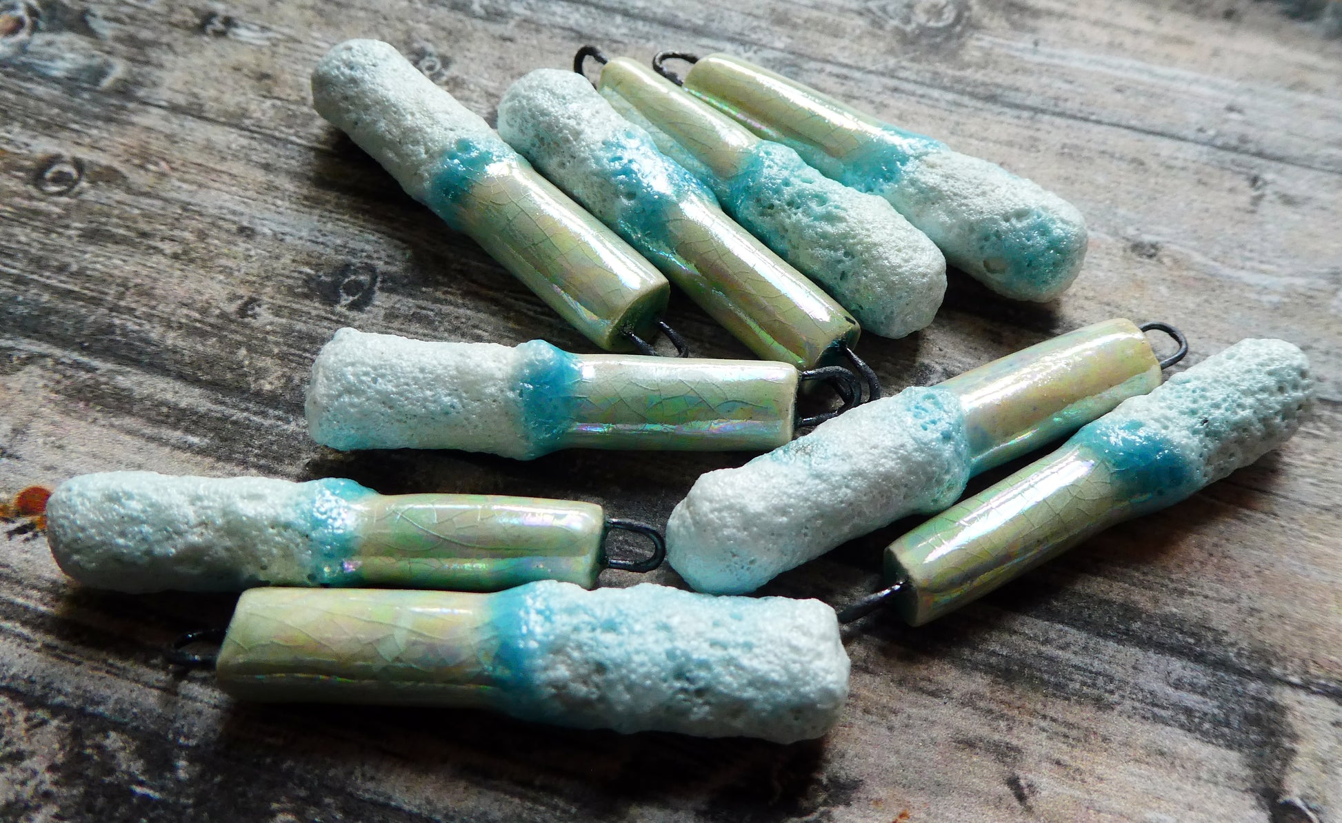 Ceramic Lustrous Snow and Ice Sticks -Aquamarine Crackle