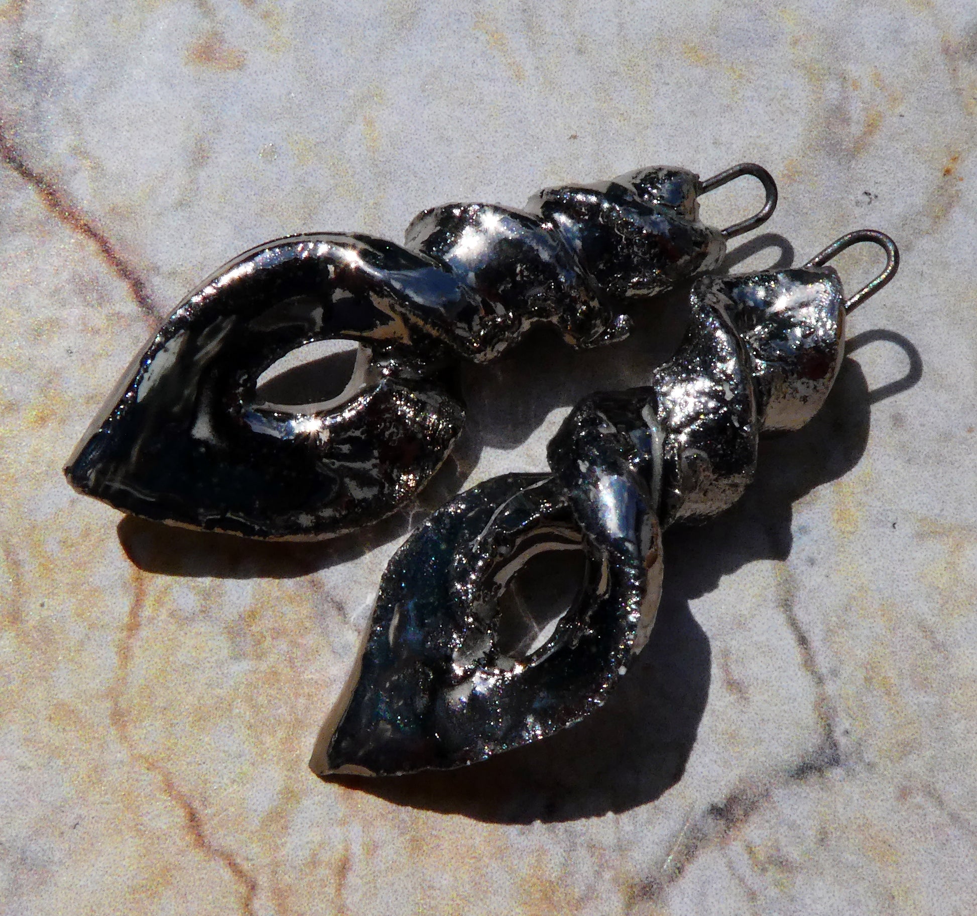 Ceramic Maori Style Twist Charms -Platinum Lustre