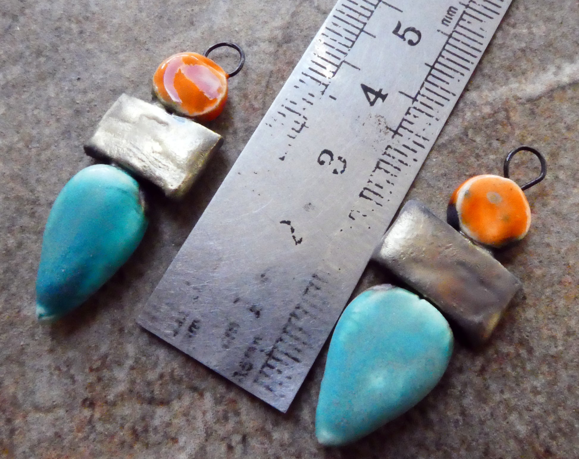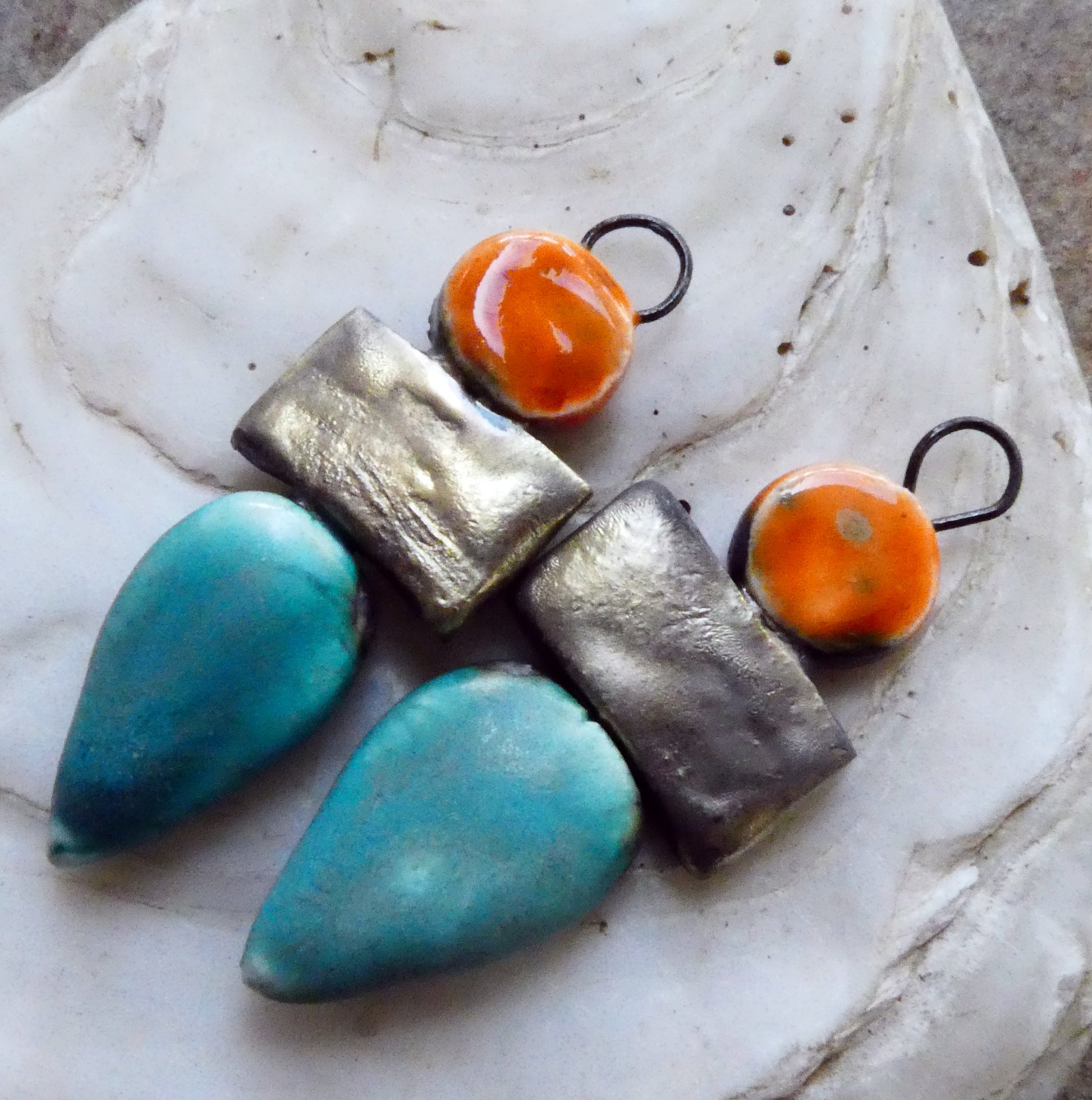 Ceramic Mixed Shape Stack Charms -Wildfire and Antique Turquoise