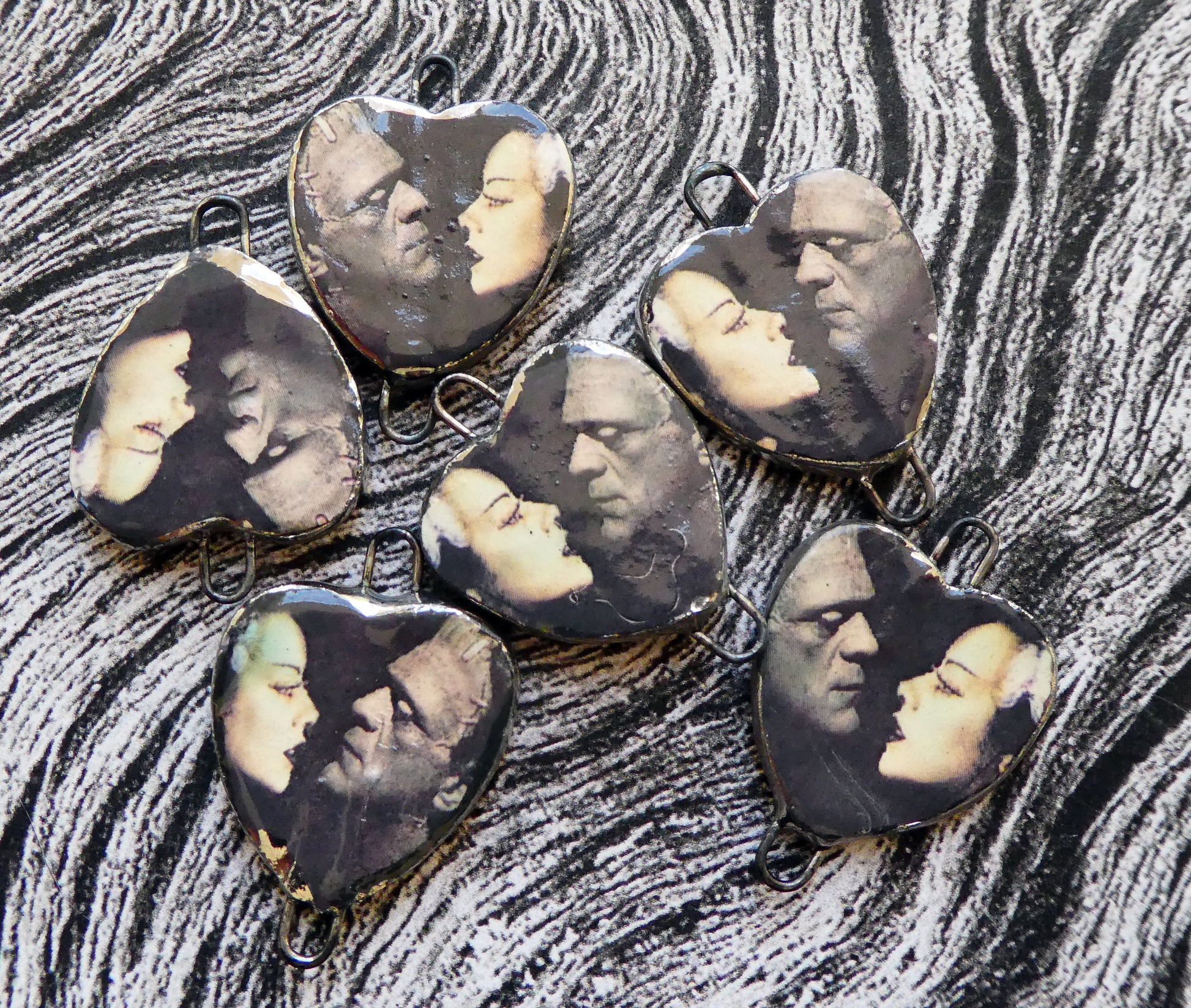 Ceramic Monstor and Bride Decal Heart Connectors #3