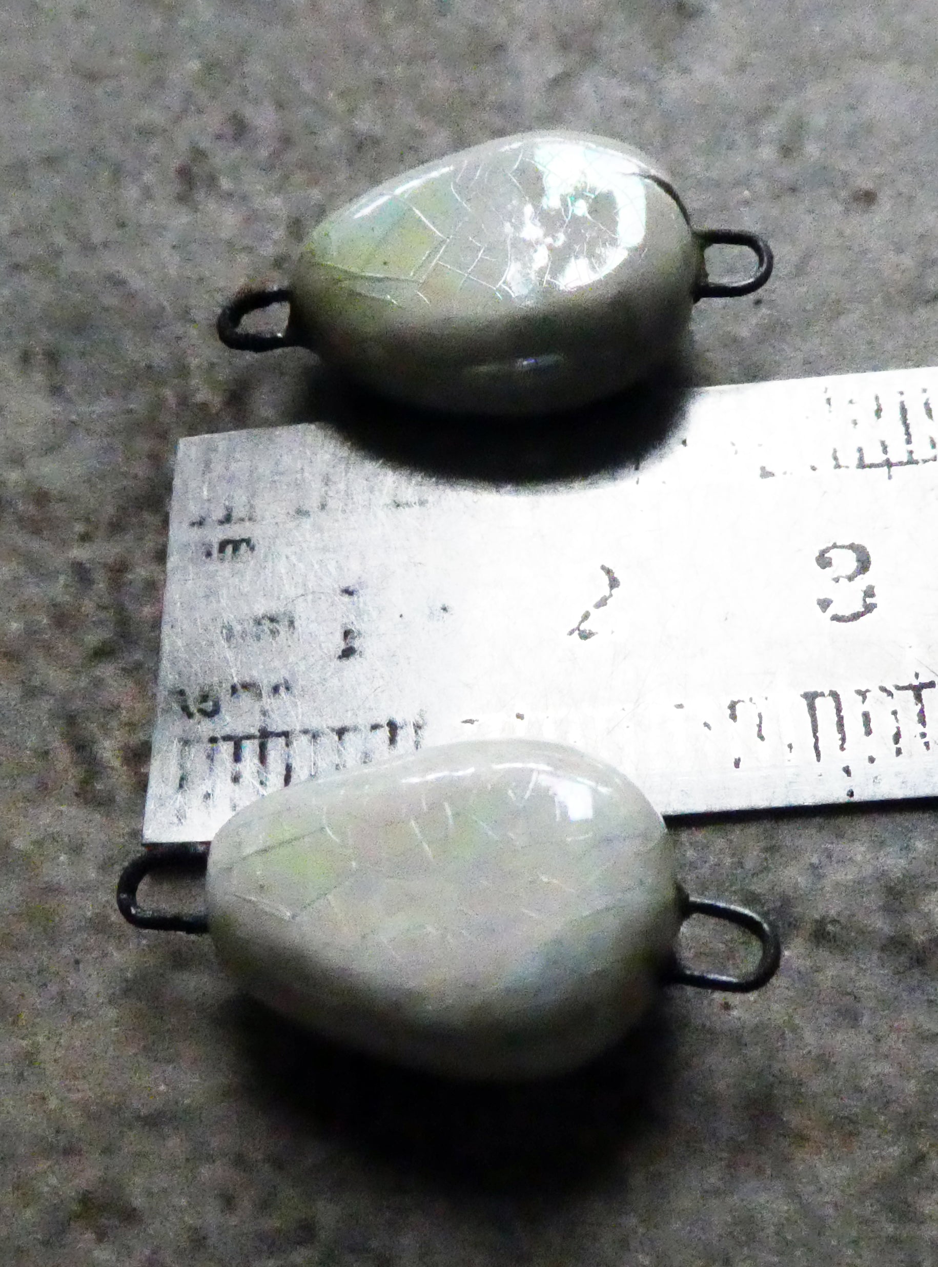 Hand formed in Porcelain, and high fired. Then fired again with Crackle glaze. Fired again with Mother of Pearl lustre.