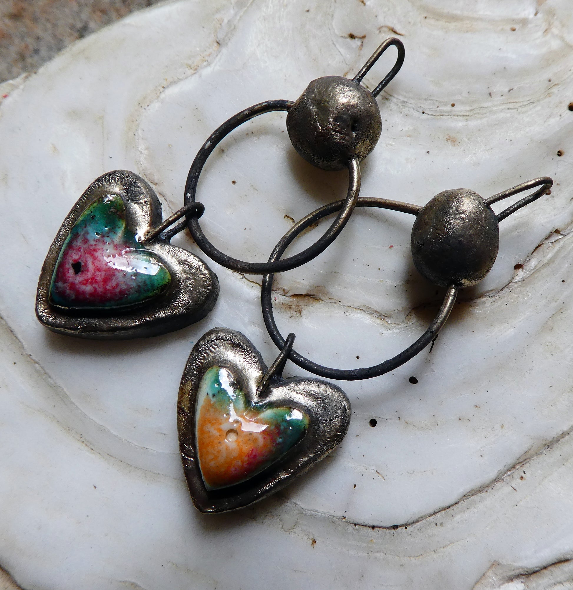 Ceramic Moulded Bobble and Heart Dangles - Poppy Field