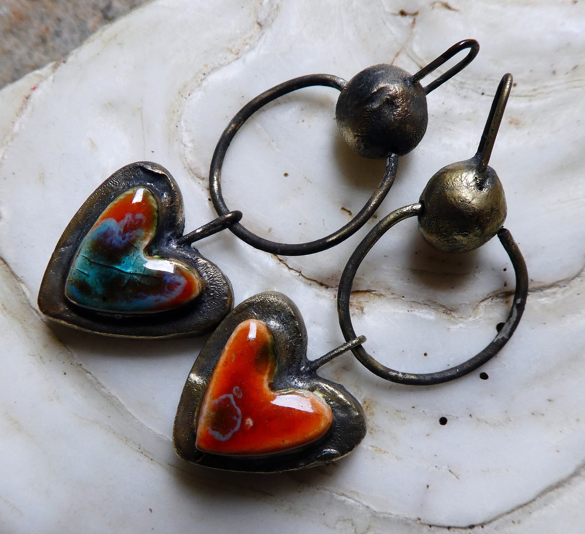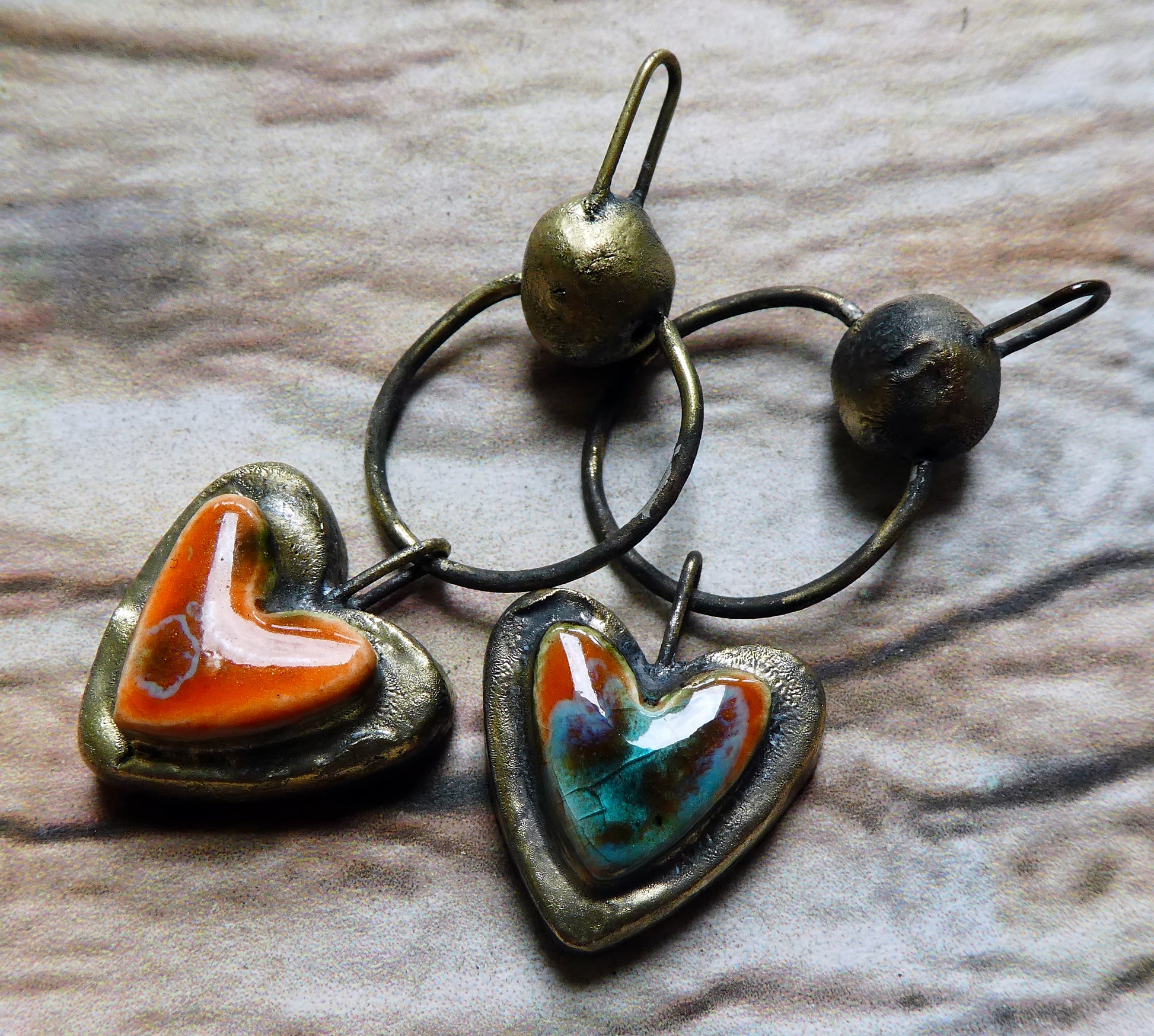 Ceramic Moulded Bobble and Heart Dangles - Vermillion Sunburst