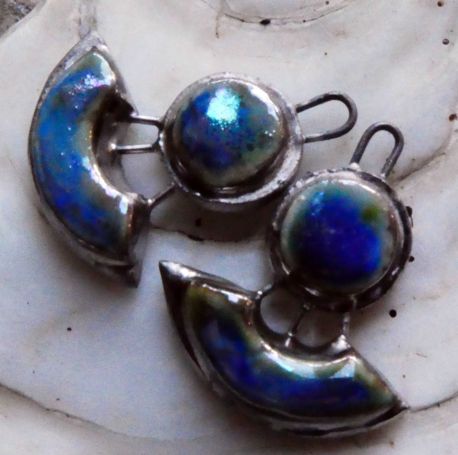 Ceramic Moulded Disc and Scoop Charms -Soft Blue
