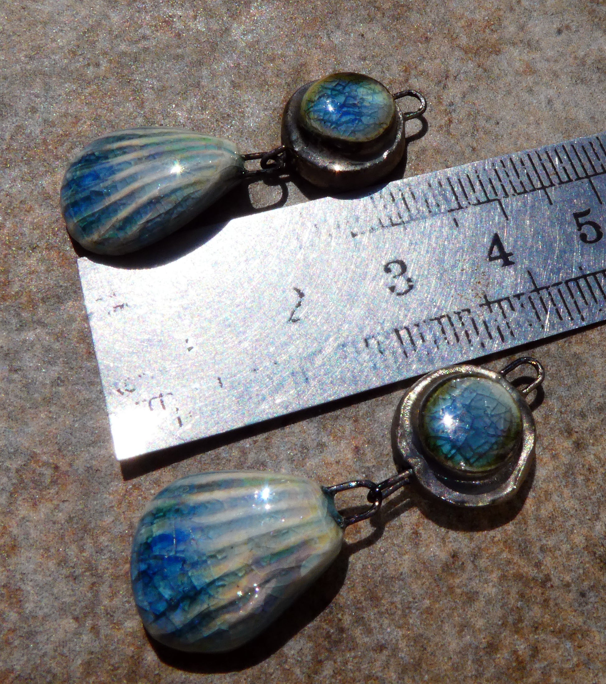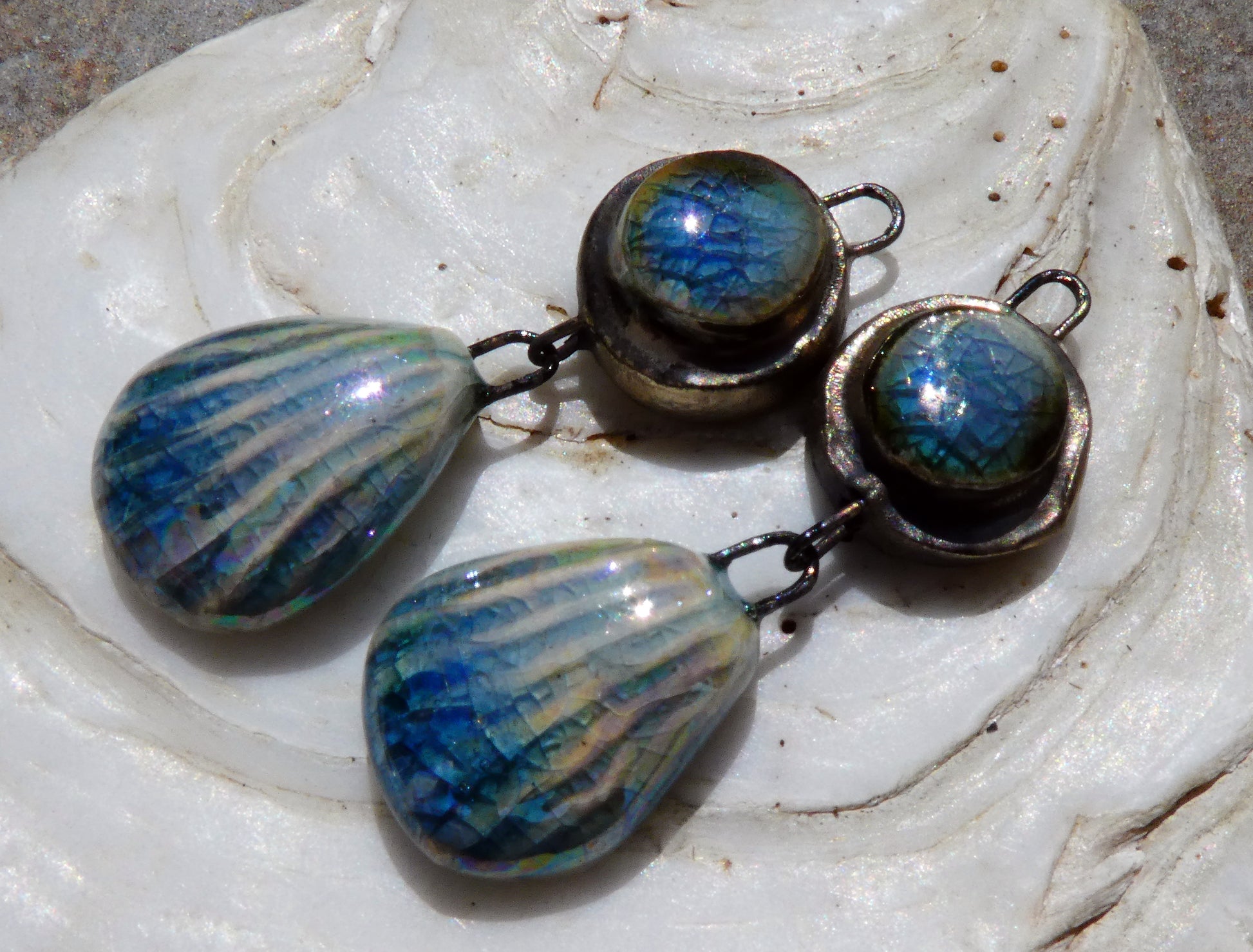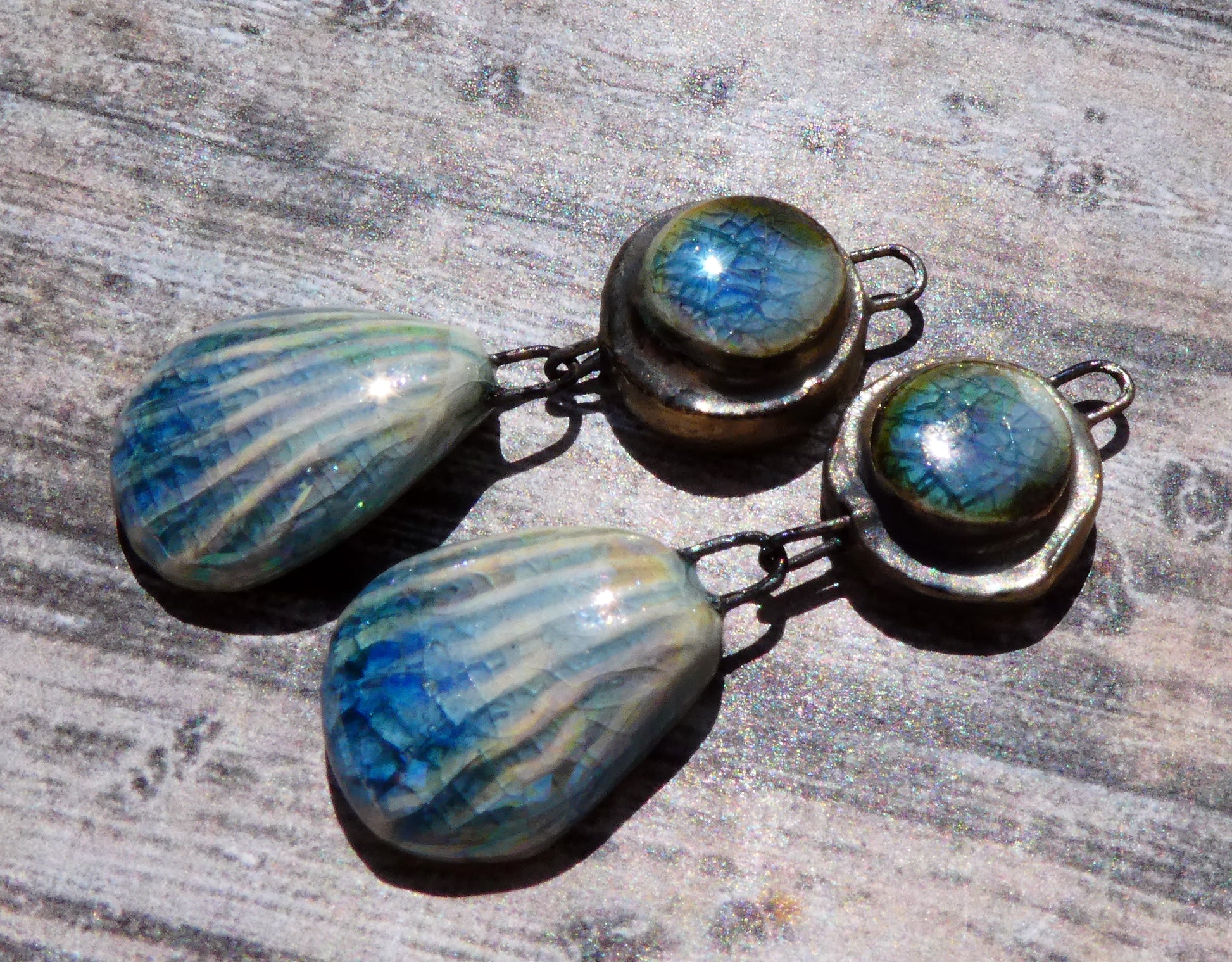 Ceramic Lustrous Moulded Disc and Shell Dangles - Water