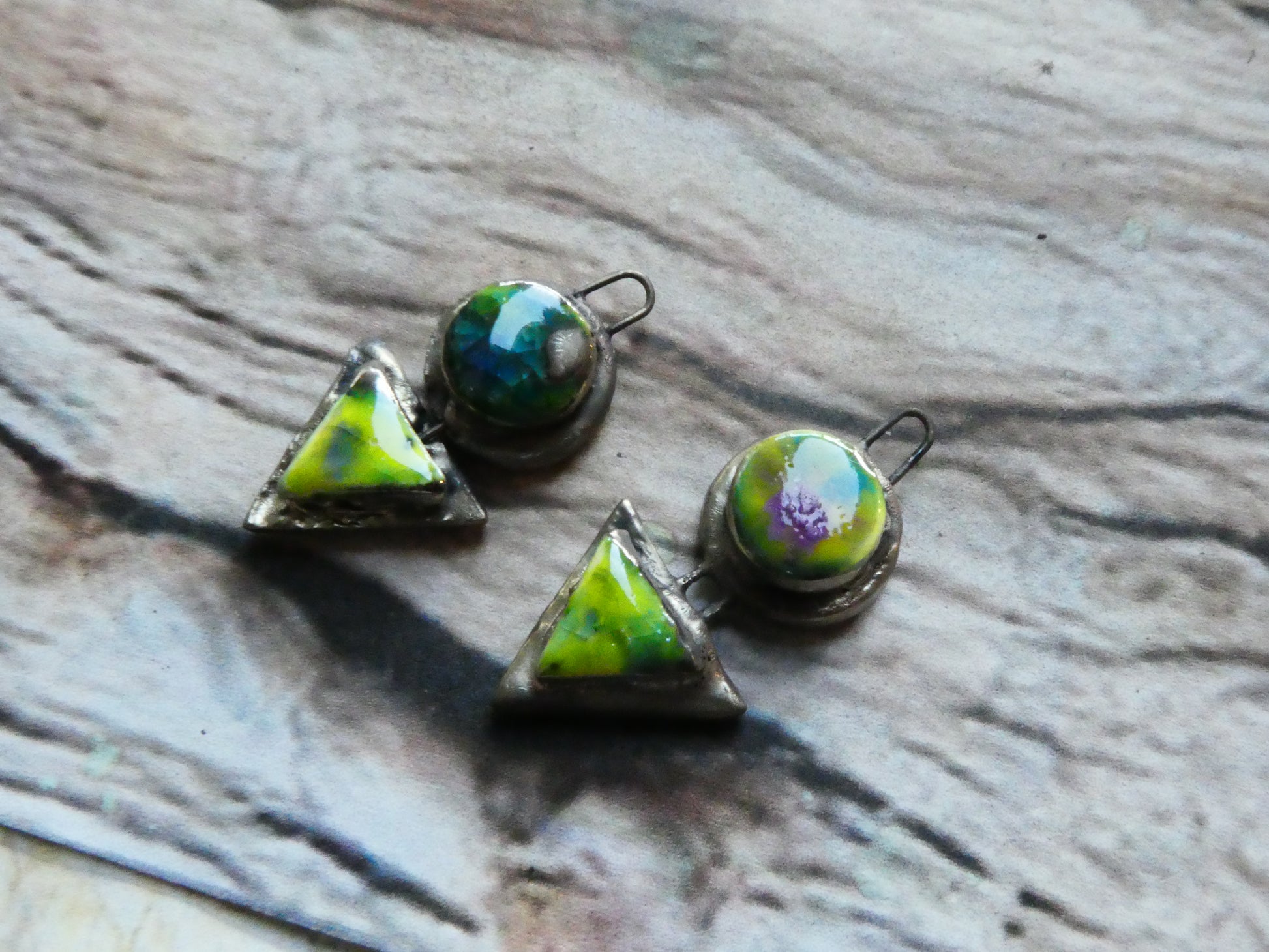Ceramic Moulded Disc and Triangle Charms -Mardi Gras