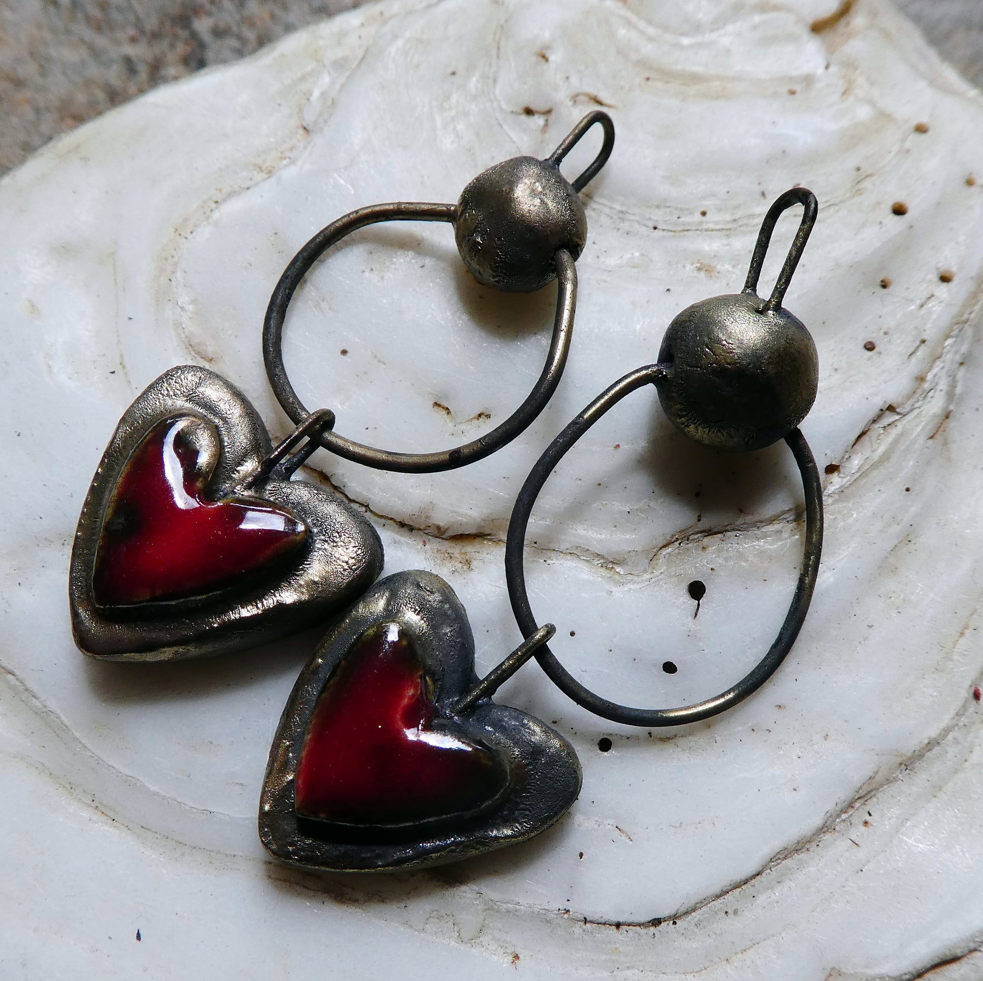 Ceramic Moulded Bobble and Heart Dangles - Pillar Box