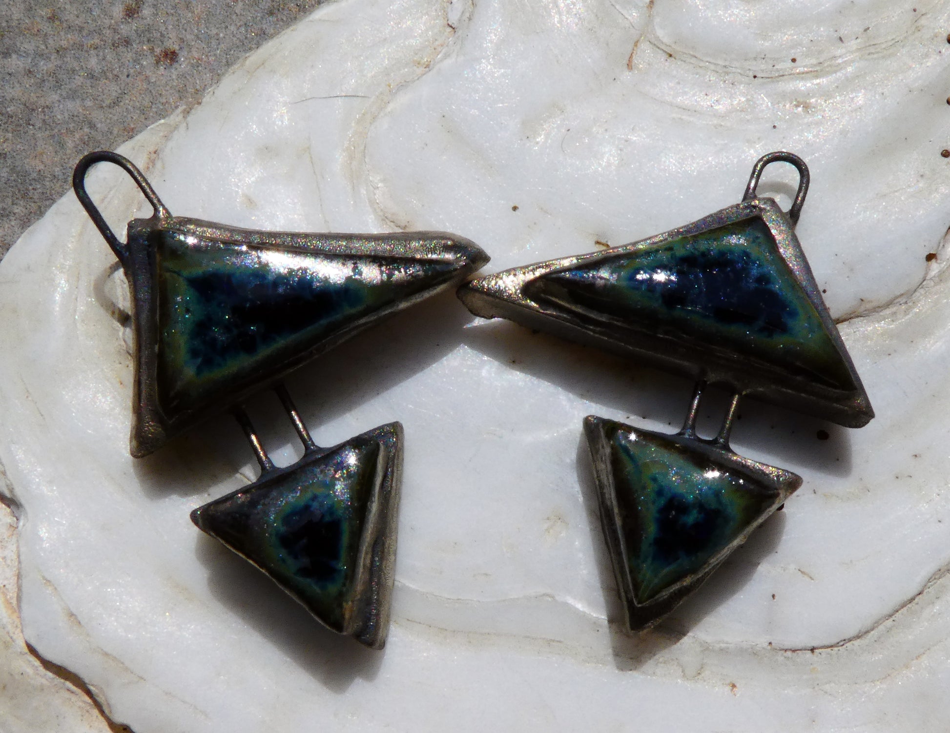 Hand formed in Earthstone and high fired. Then fired again with bronze clay and Granada glaze.