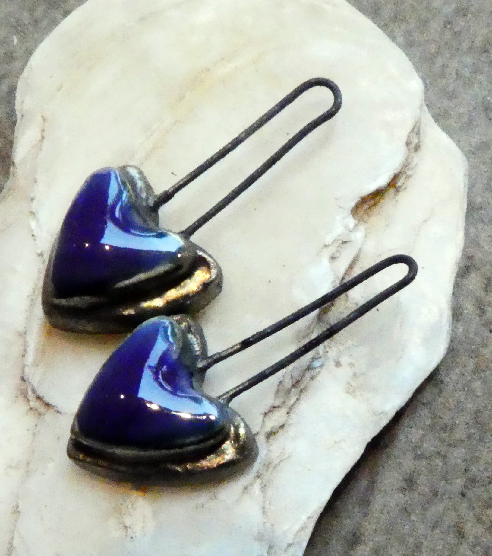 Ceramic Little Moulded Heart Dangles- Dark Purple