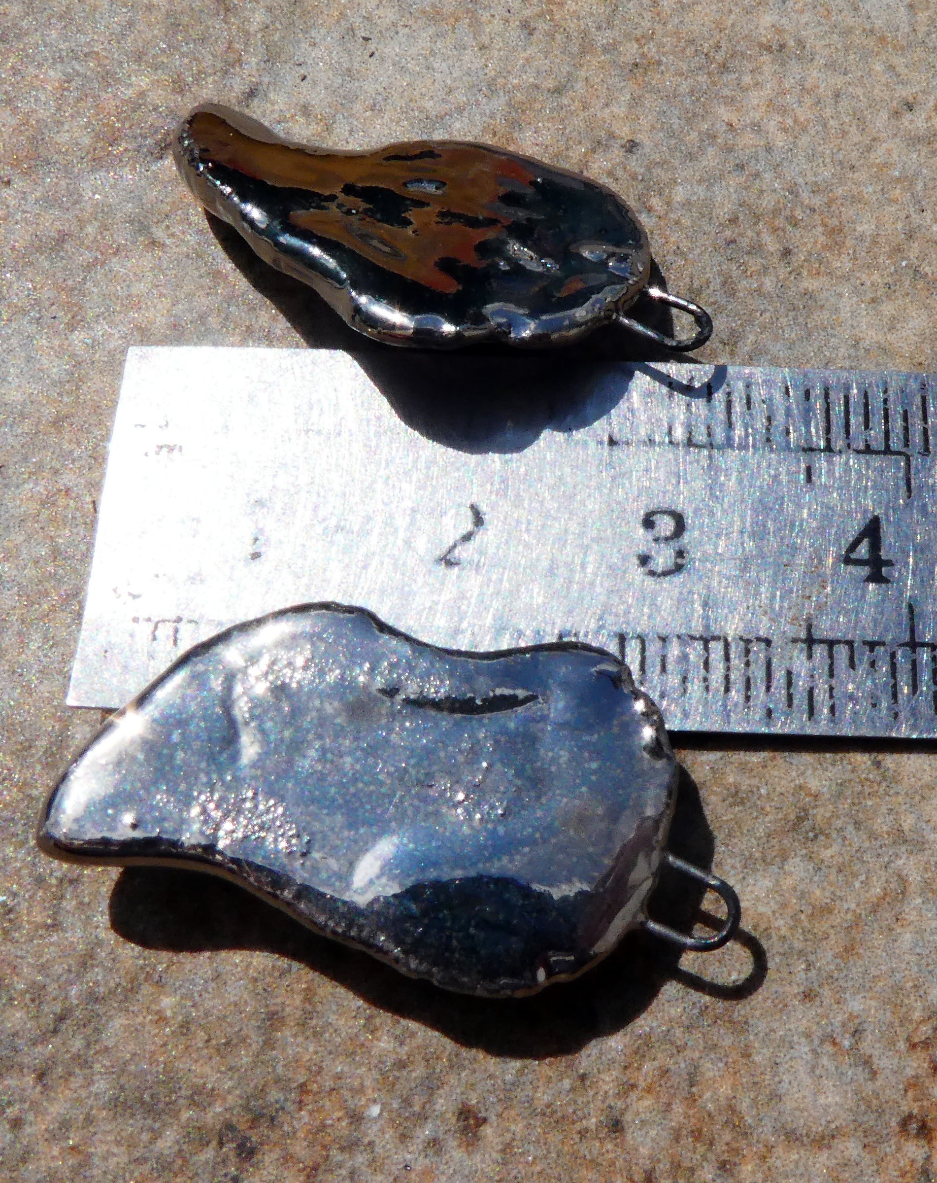 Hand formed in Earthstone and high fired. Then fired again with Blue Guppy and Gloss glaze. Applied with Platinum lustre, and fired once more.
