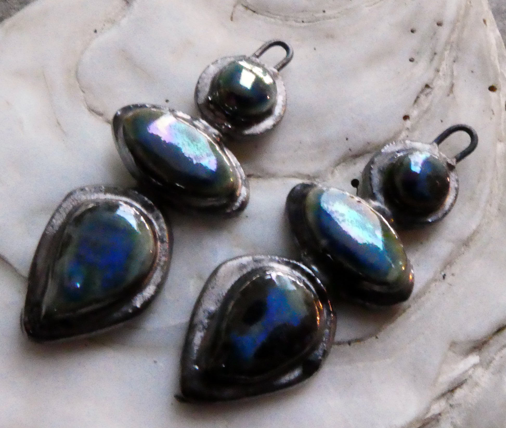Ceramic Moulded Mixed Shape Stack Charms - Soft Blue and Platinum
