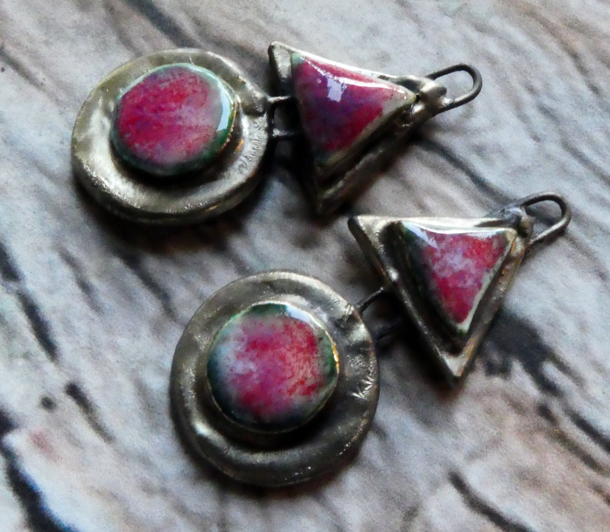 Hand formed in Earthstone and high fired.  Then fired again with bronze clay and Berry Tart glaze.