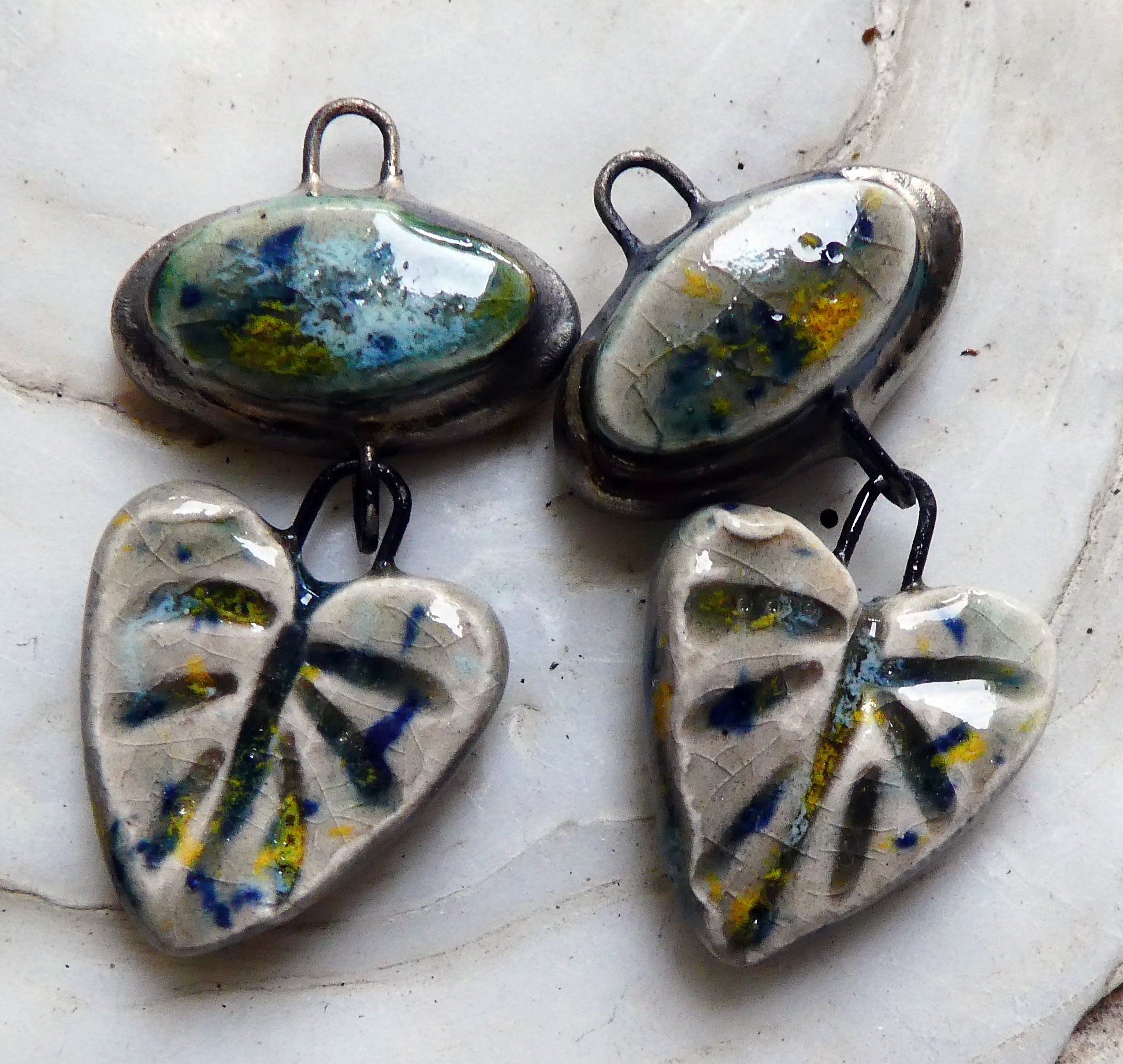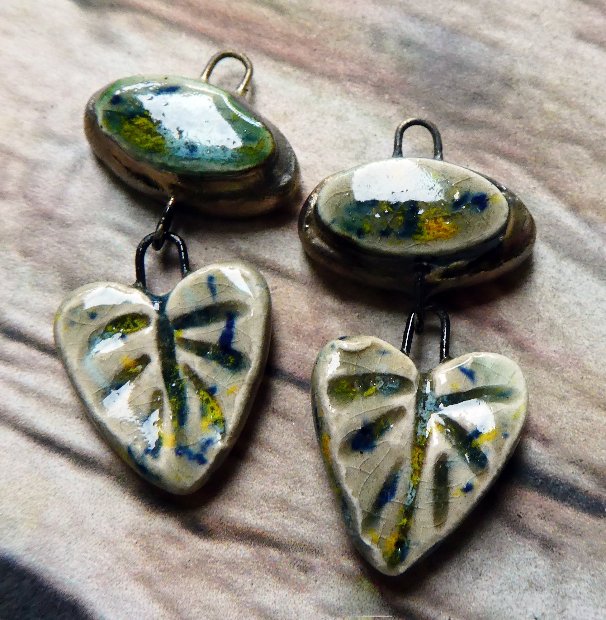 Ceramic Moulded Oval and Leaf Dangles - Fireflies
