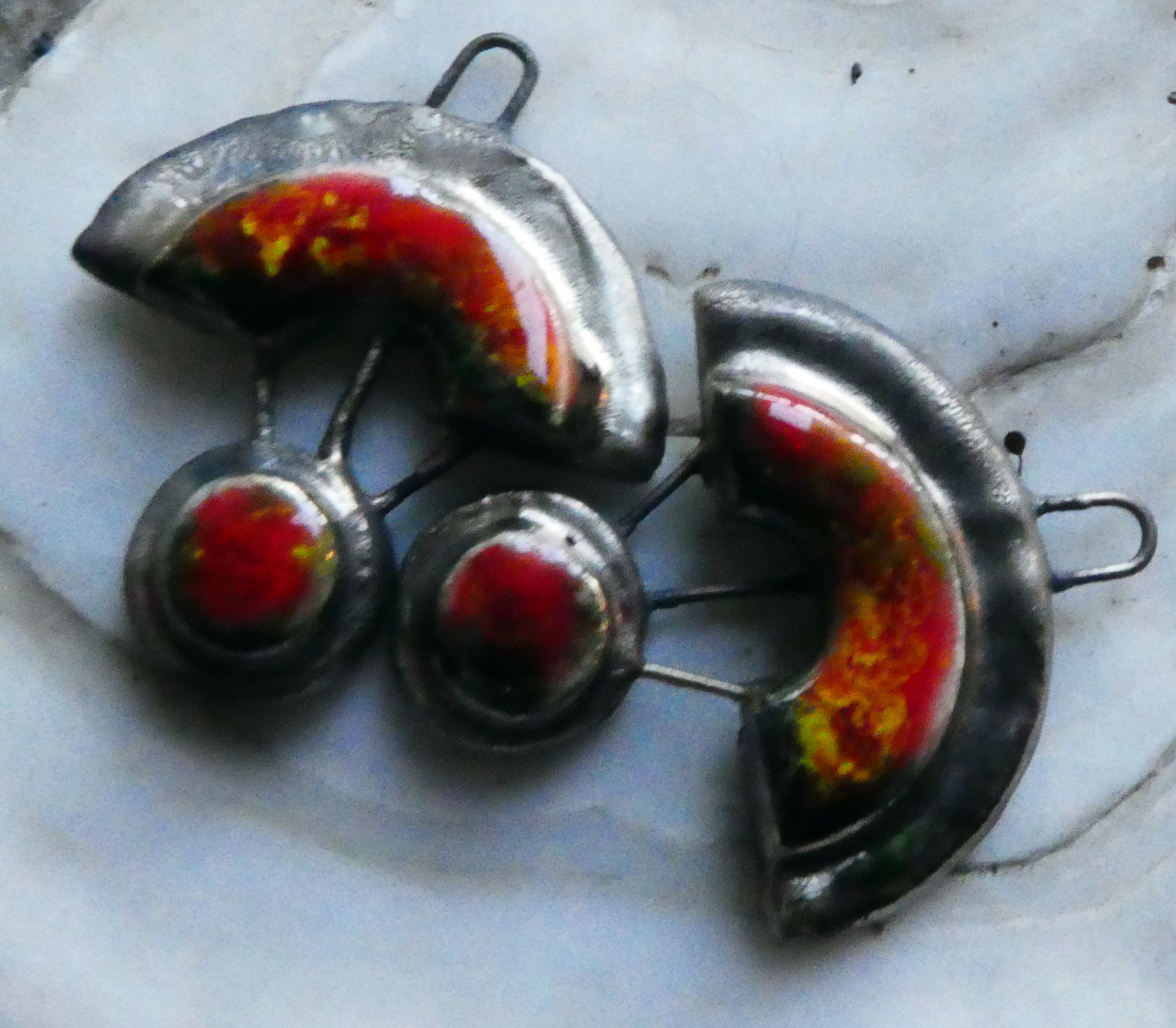 Ceramic Moulded Scoop and Disc Charms - Firecracker