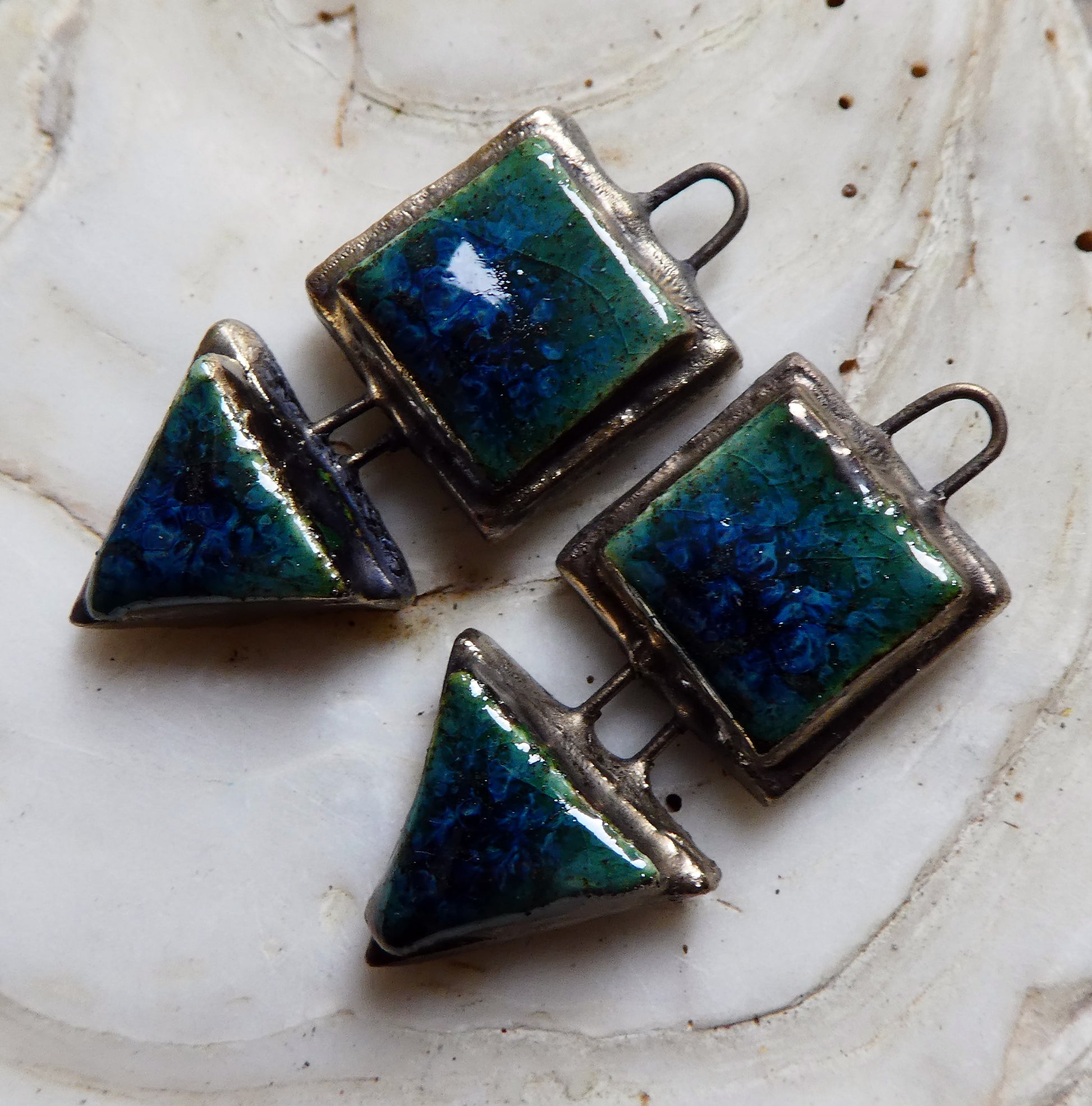 Ceramic Moulded Square and Triangle Charms - Bora Bora