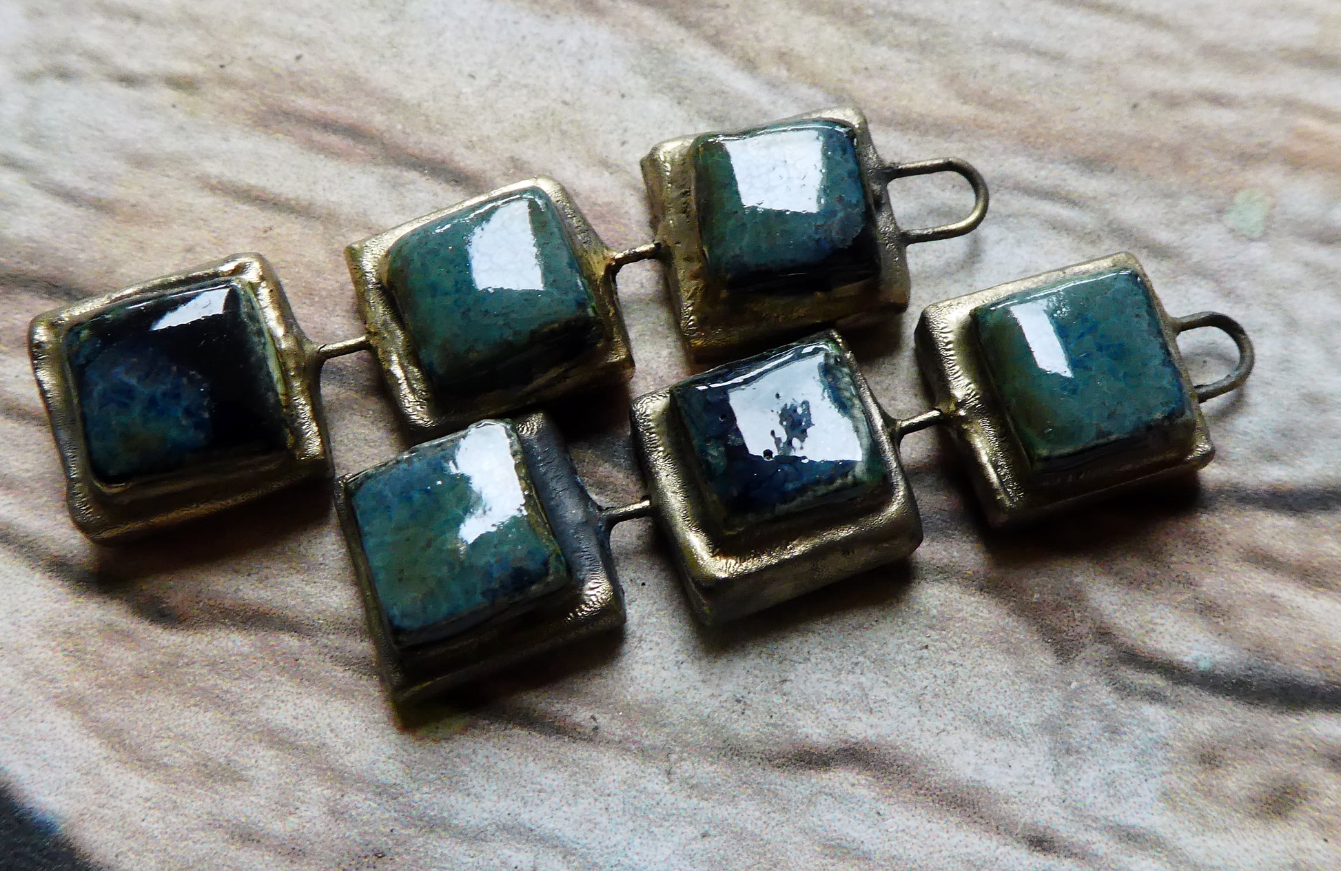 Ceramic Moulded Square Stack Charms - Obsidian