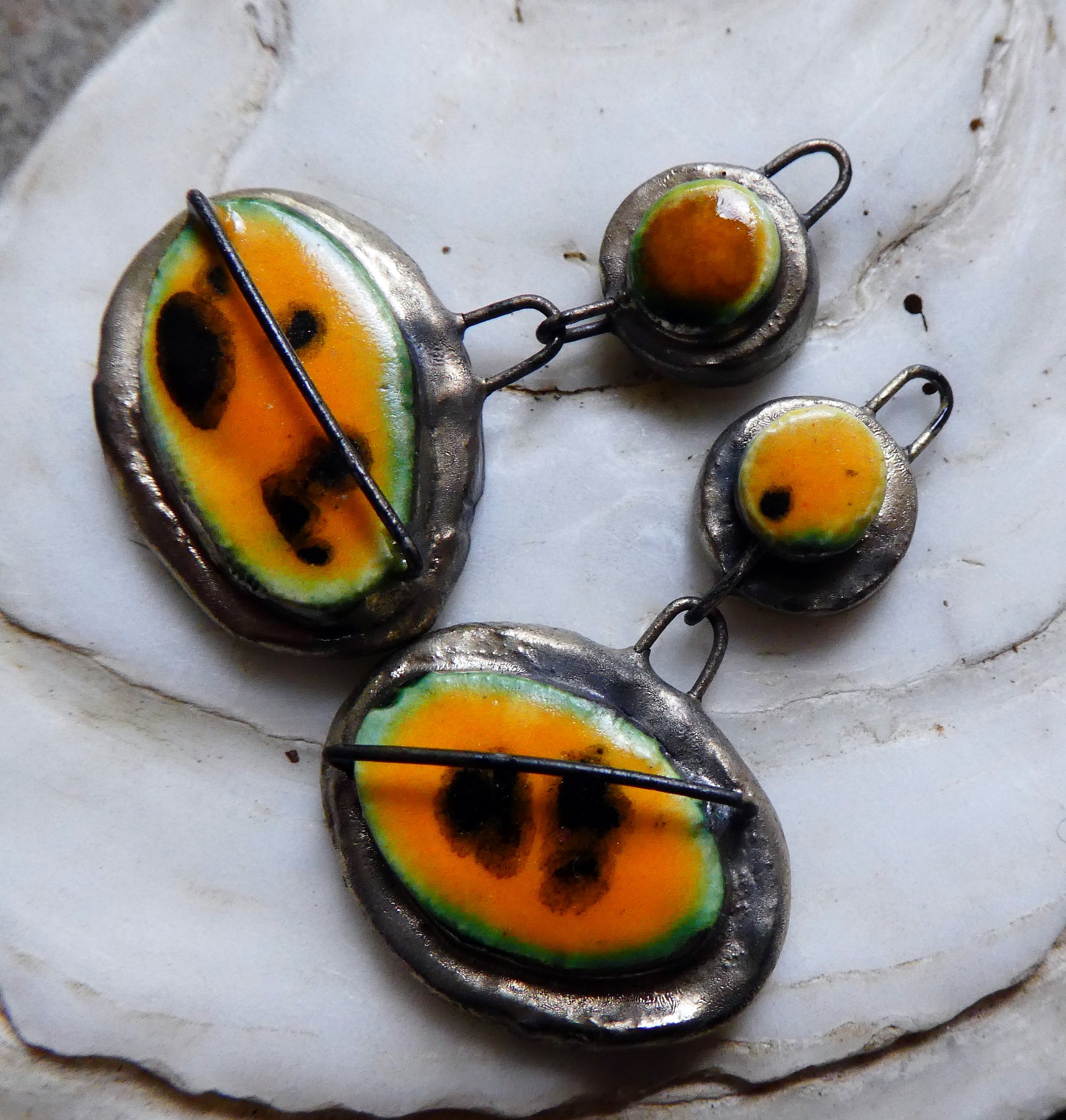 Ceramic Moulded Stapled Disc Dangles -Papaya