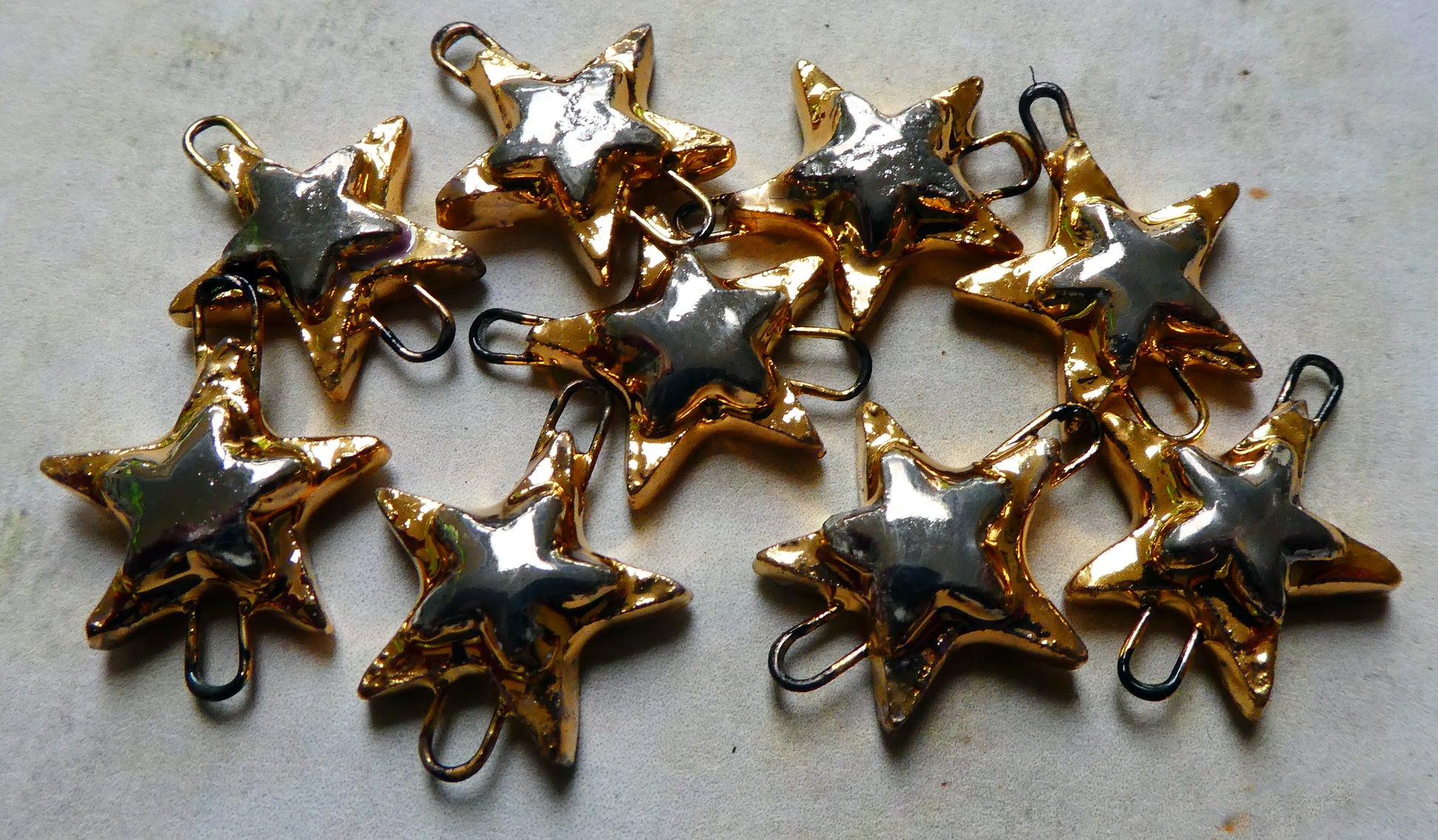 Ceramic Moulded Stars Earring Connectors - Gold and Platinum Lustre
