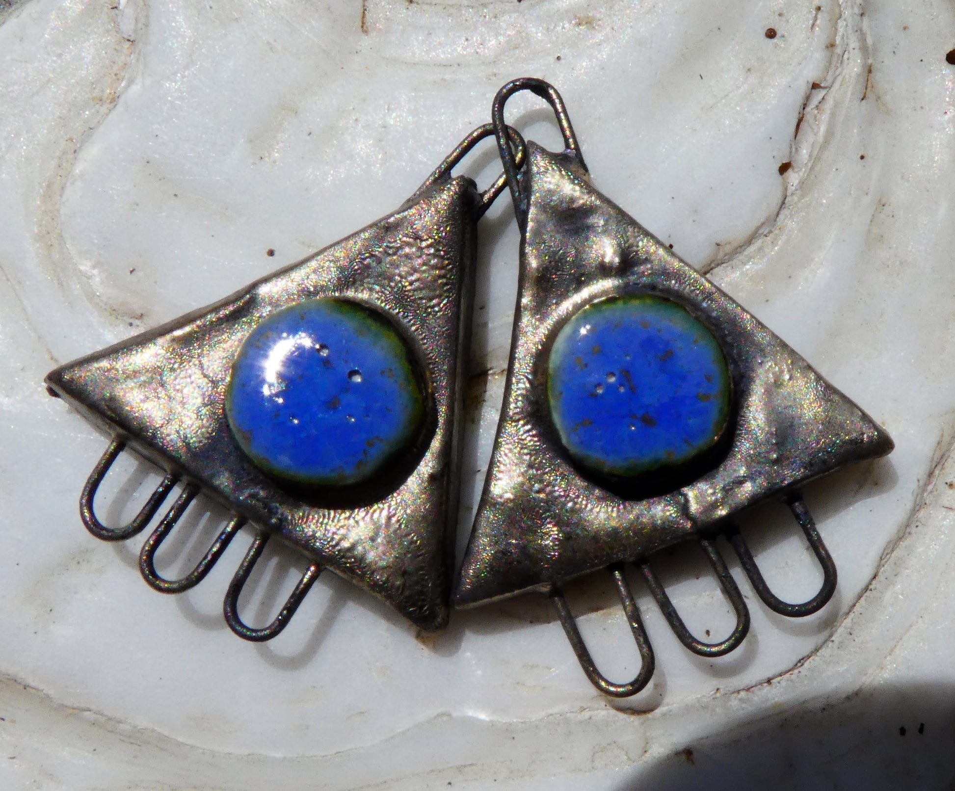 Hand formed in Earthstone and high fired. Then fired again with bronze clay and Ohio glaze.