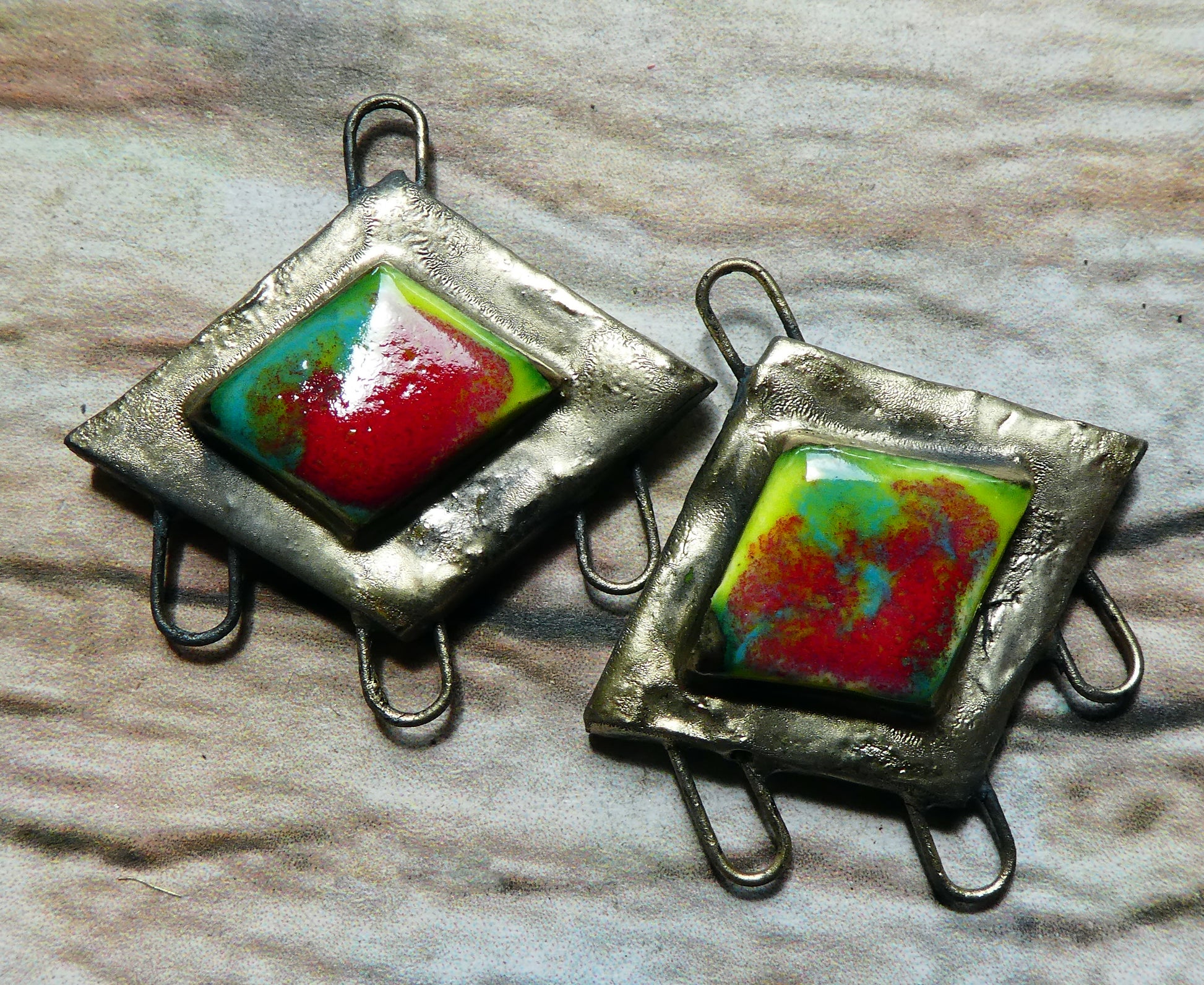 Hand formed in Earthstone and high fired. Then fired again with bronze clay and Cherry Limeade glaze.