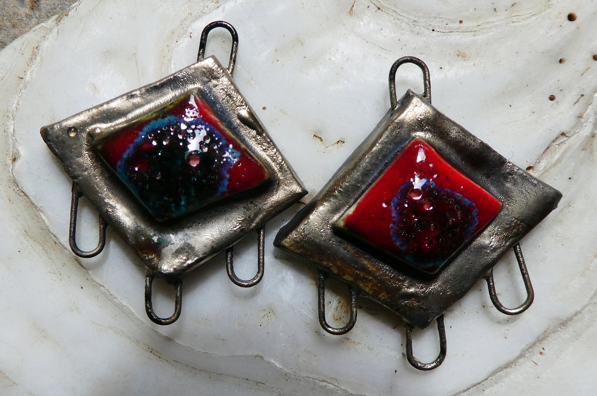 Hand formed in Earthstone and high fired. Then fired again with bronze clay and Ladybird glaze.