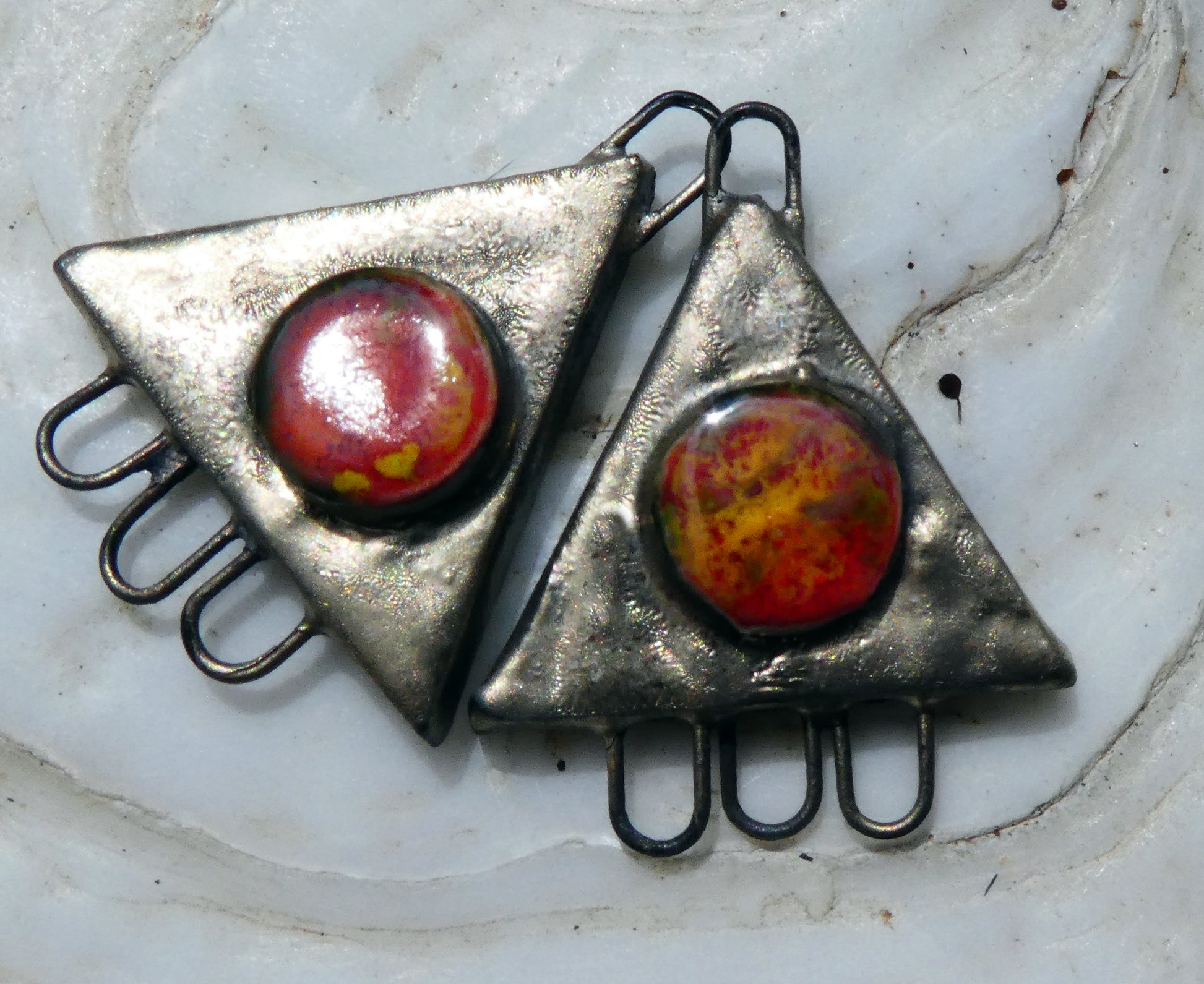 Ceramic Moulded Three Hoop Triangle Connectors - Firecracker