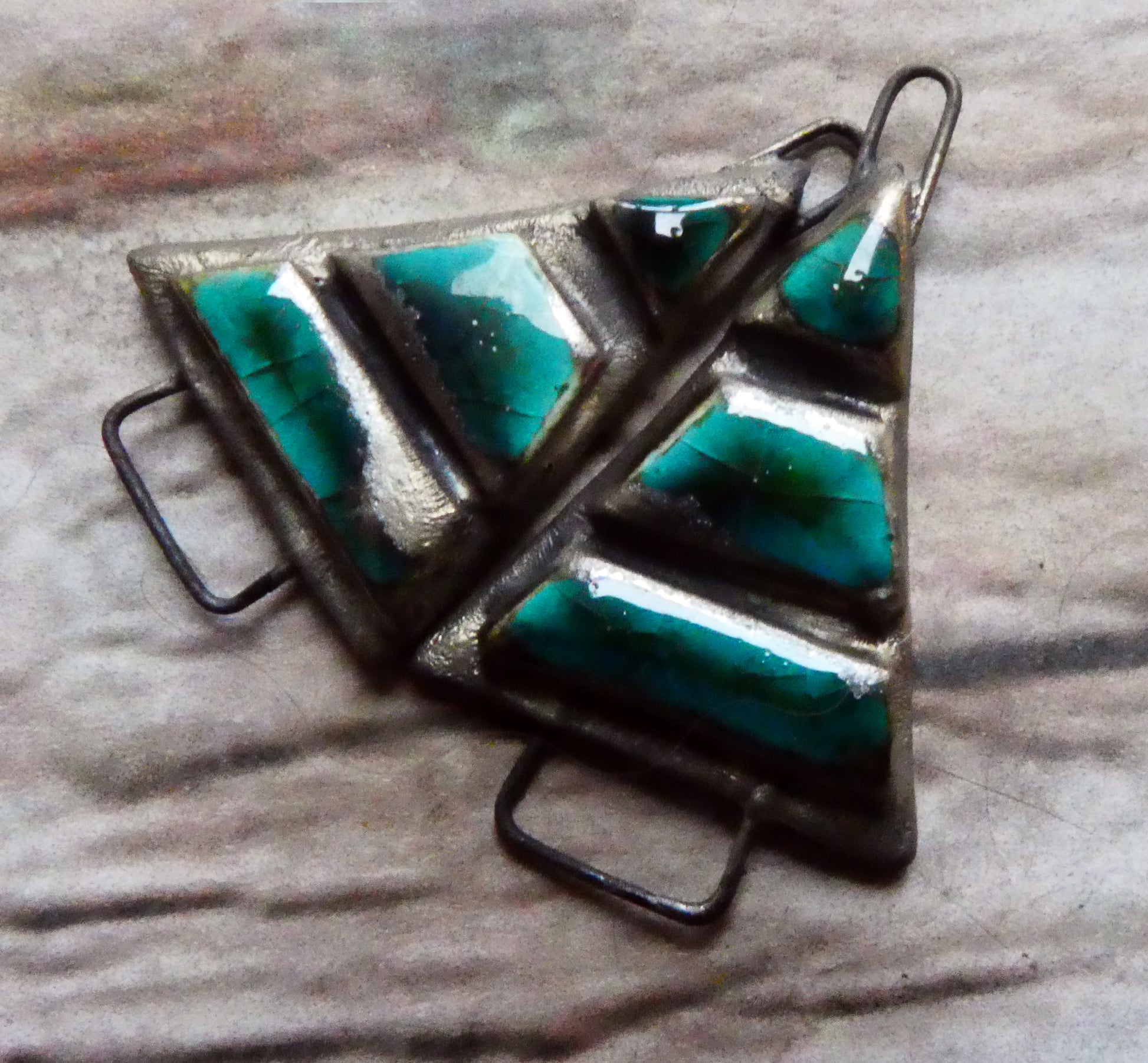 Hand formed in Earthstone and high fired. Then fired again with bronze clay and Ocean Mist glaze.