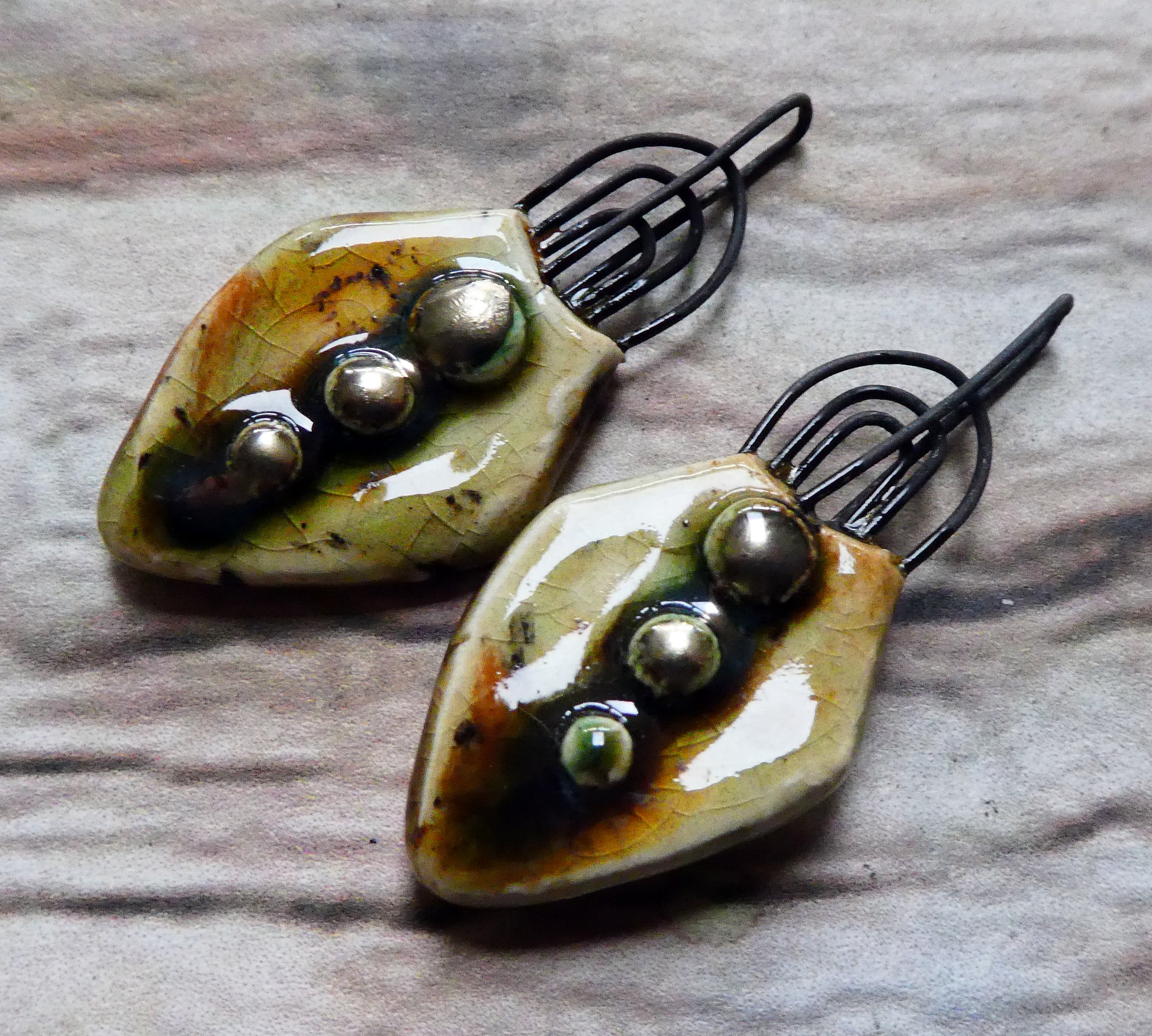 Hand formed in Earthstone and high fired. Then fired again with bronze clay and Safari glaze.