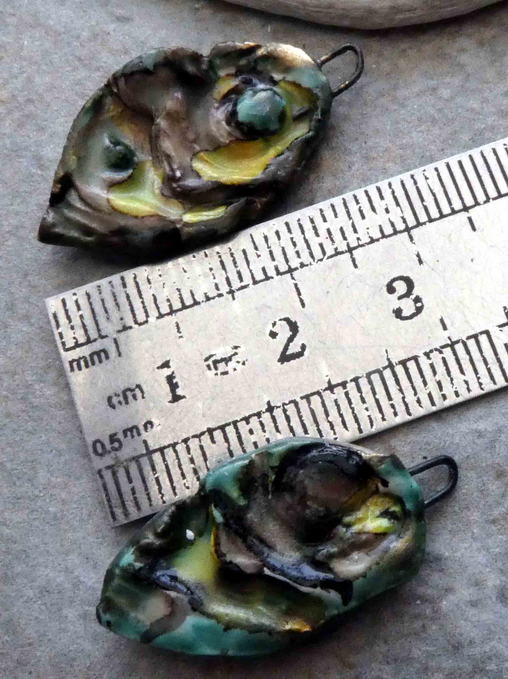 Hand formed in Earthstone, textured with organic moulds and high fired. Then fired again with gloss glaze. Applied with layers of mixed brown and black alcohol inks. Low fired to set the colours, then applied with lacquer and low fire again to a glossy finish. Reversible.