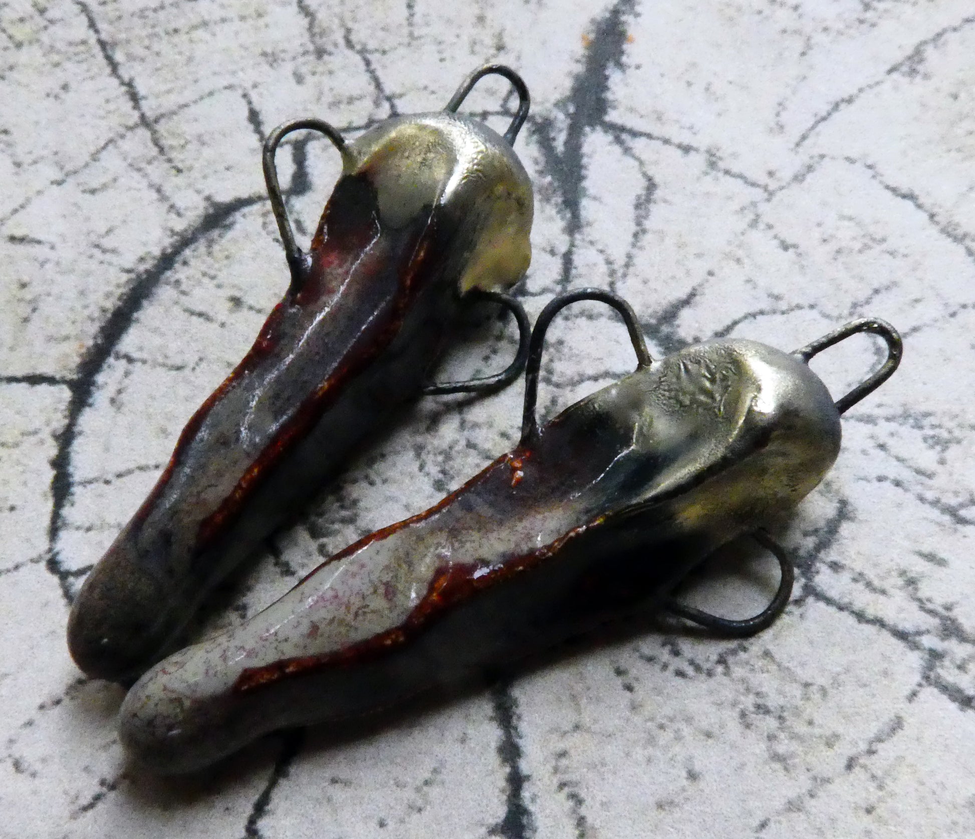 Ceramic Pinched Dagger Earring Connectors -Volcanic Glow
