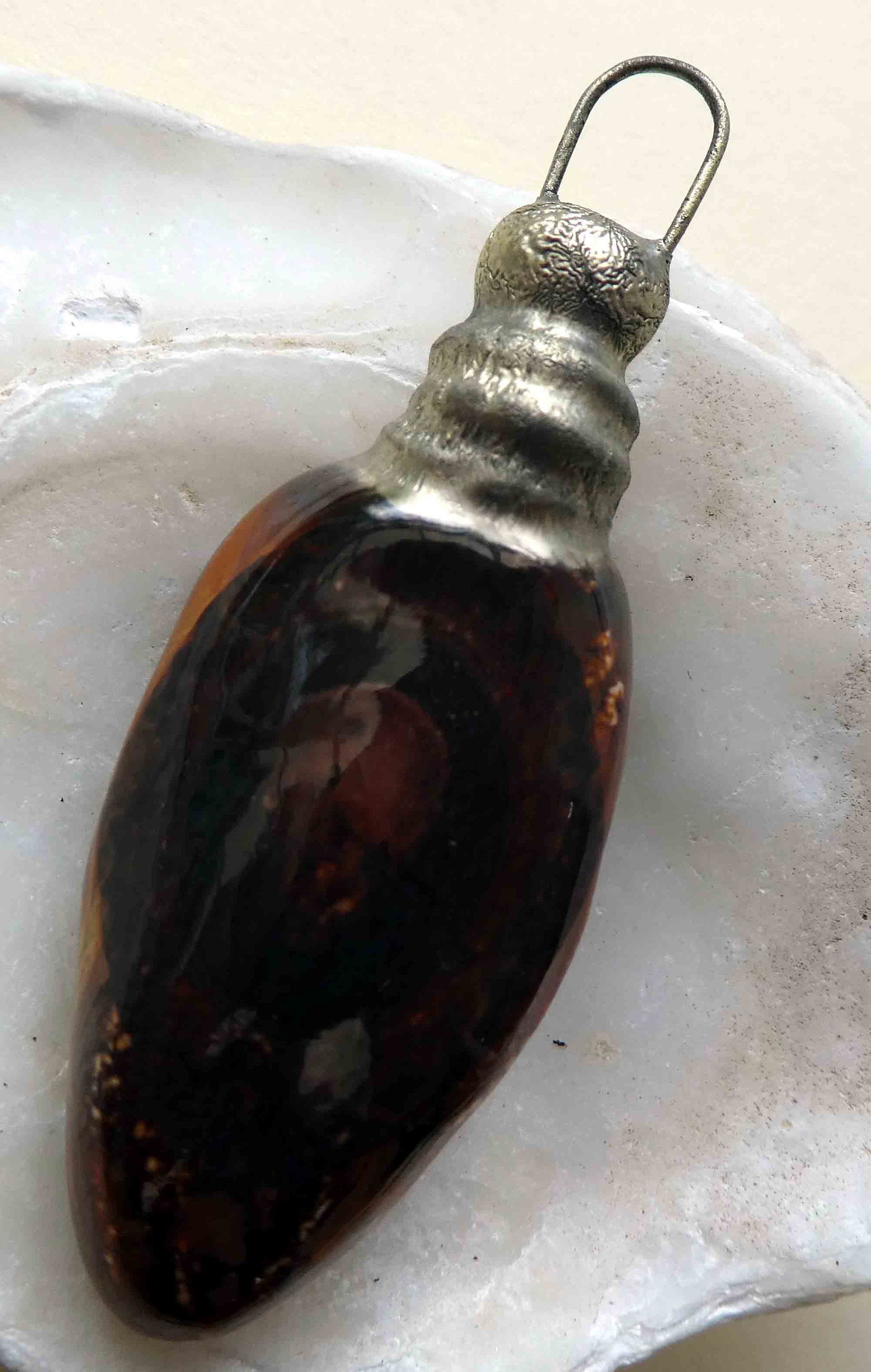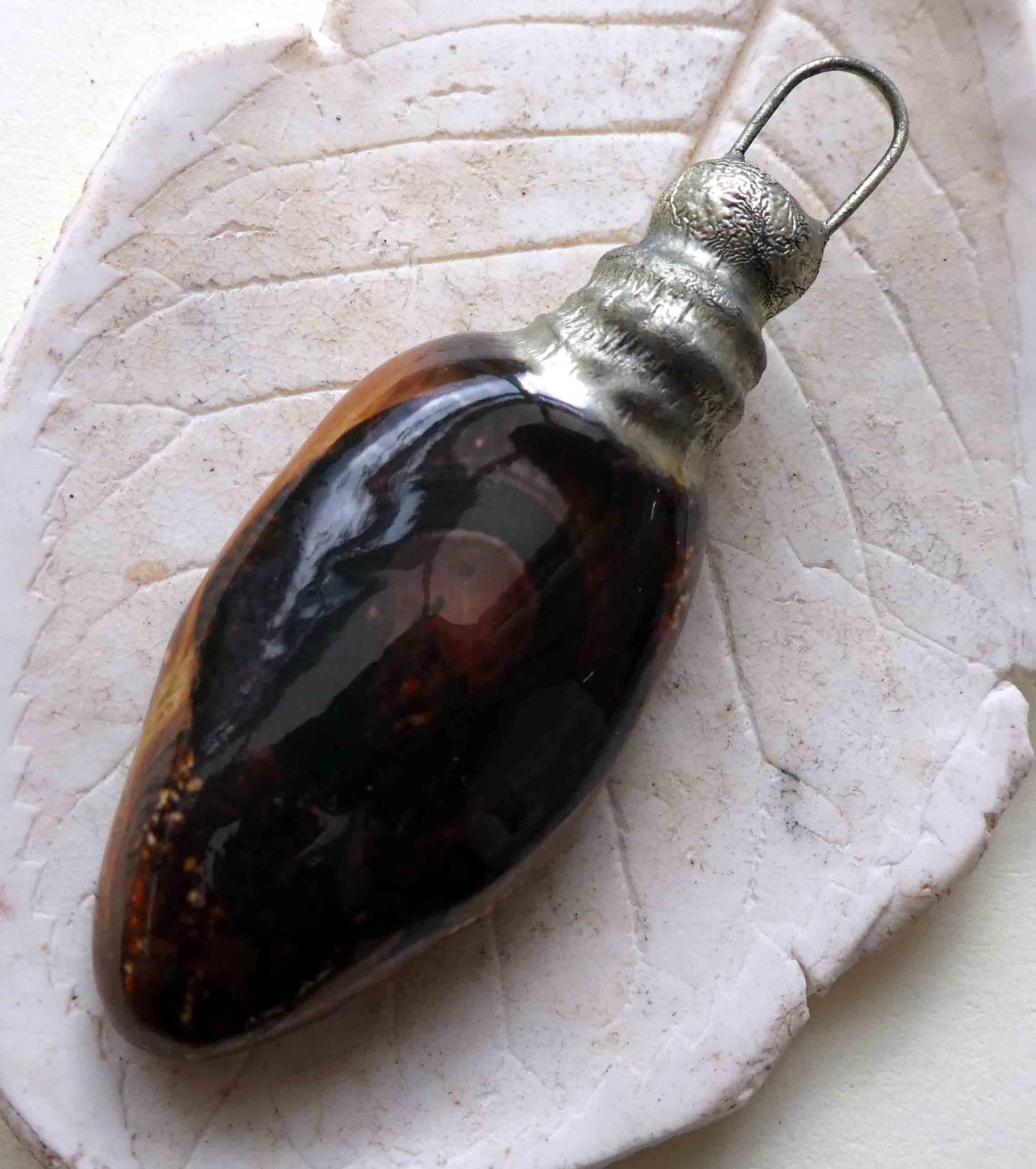 A little decal poison bottle mini pendant. Hand sculpted in Earthstone, and high fired. Then fired again with Bronze clay, and Dune glaze. Then applied with a decorative skull decals on both sides, and fired again. The decal is quiet faint, giving it a ghostly appearance. I've fired the stopper in, so this is a purely decorative piece. See pic 2 for size. ©ScorchedEarthDesigns