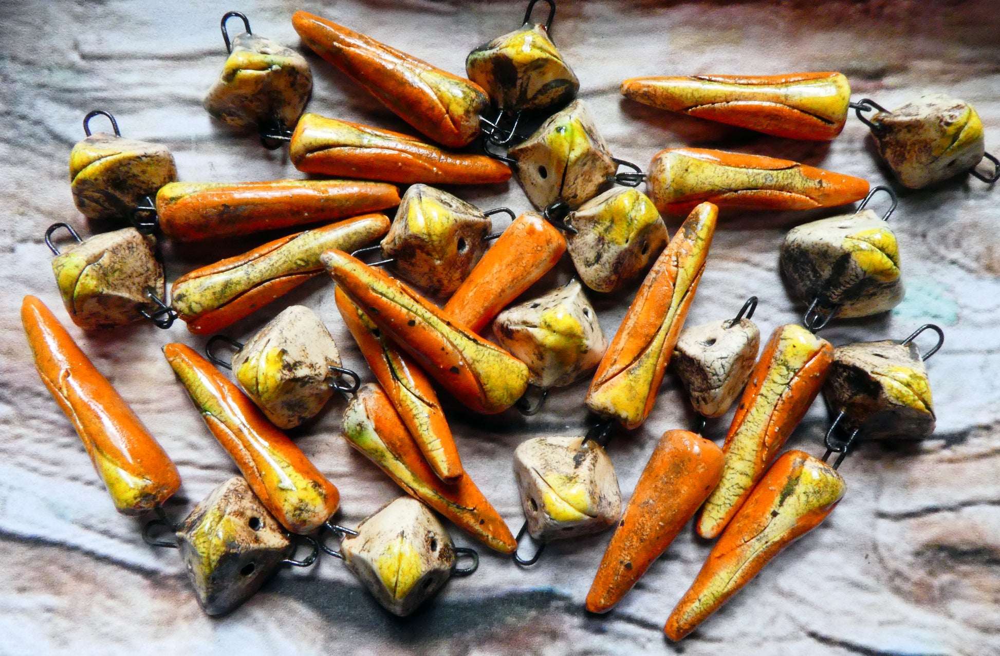 Hand formed in Earthstone and high fired. Then fired again with Oxide. Fired once more with Mandarin, Saffron and matte glaze.