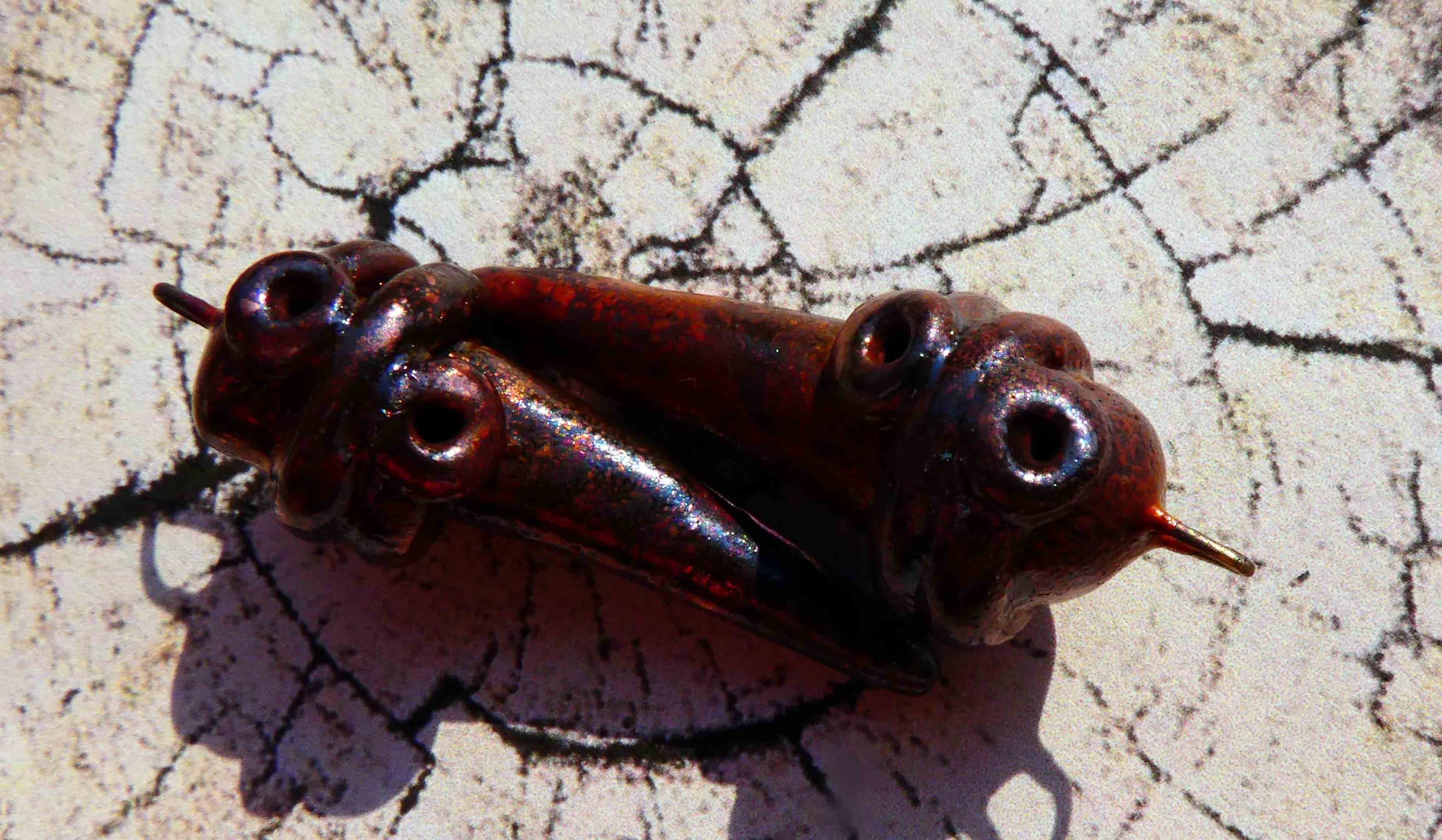 Hand formed in Earthstone, and high fired. Then raku fired again with my own copper washes.