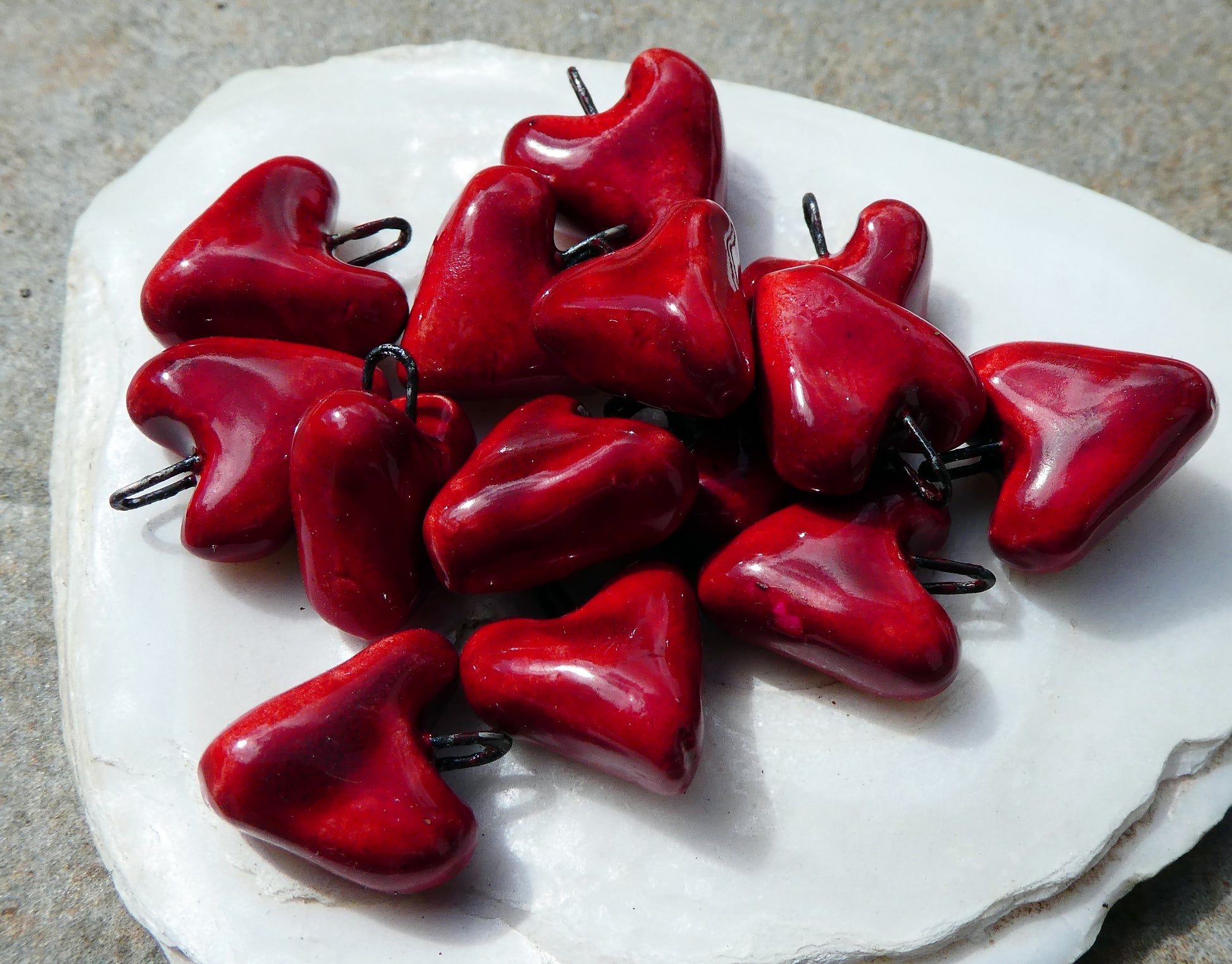 Hand formed in smooth black stoneware and fired with Red glaze. 20mms and very lightweight. ©ScorchedEarthDesigns