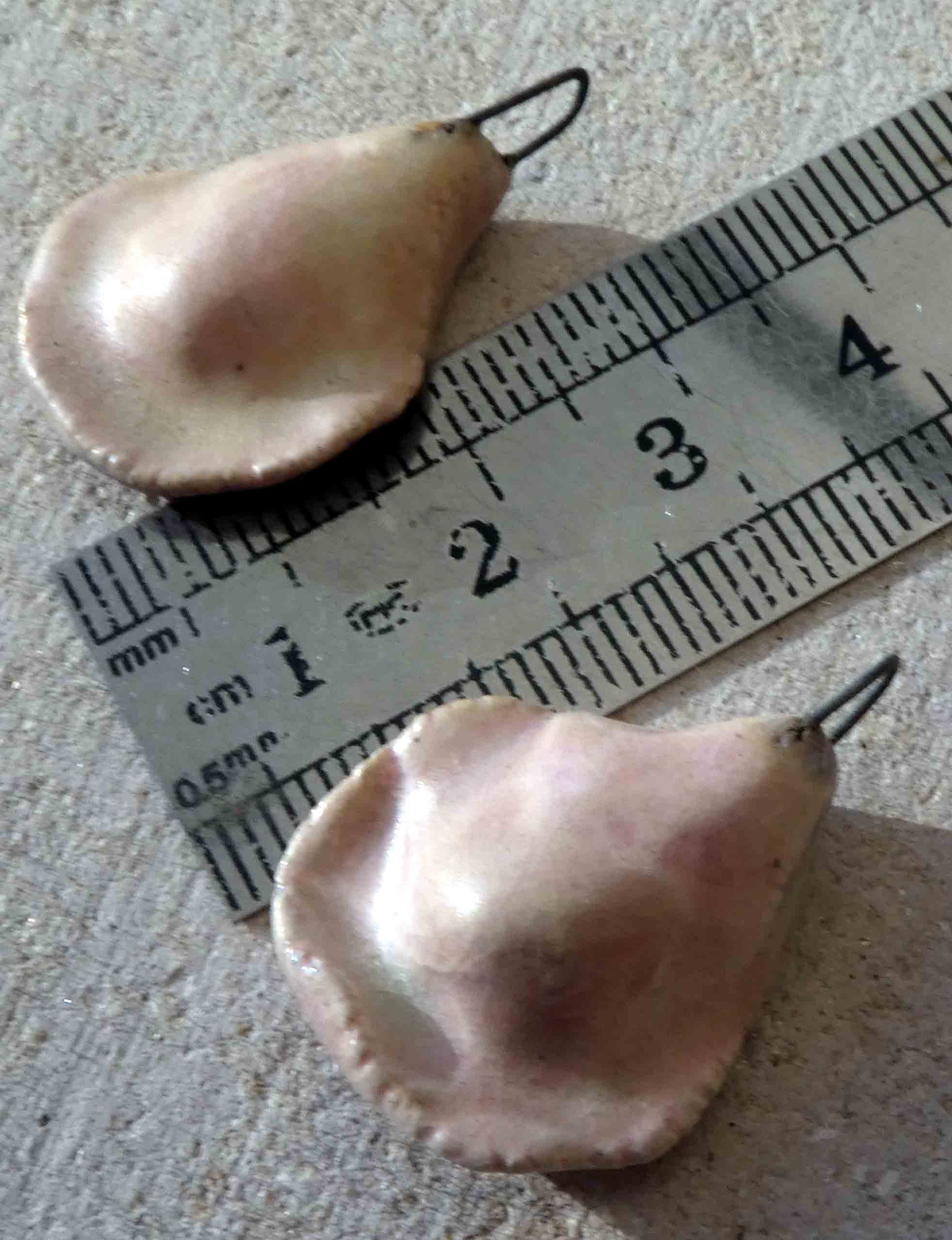 A pair of ceramic, lustred, rose petal earring charms.