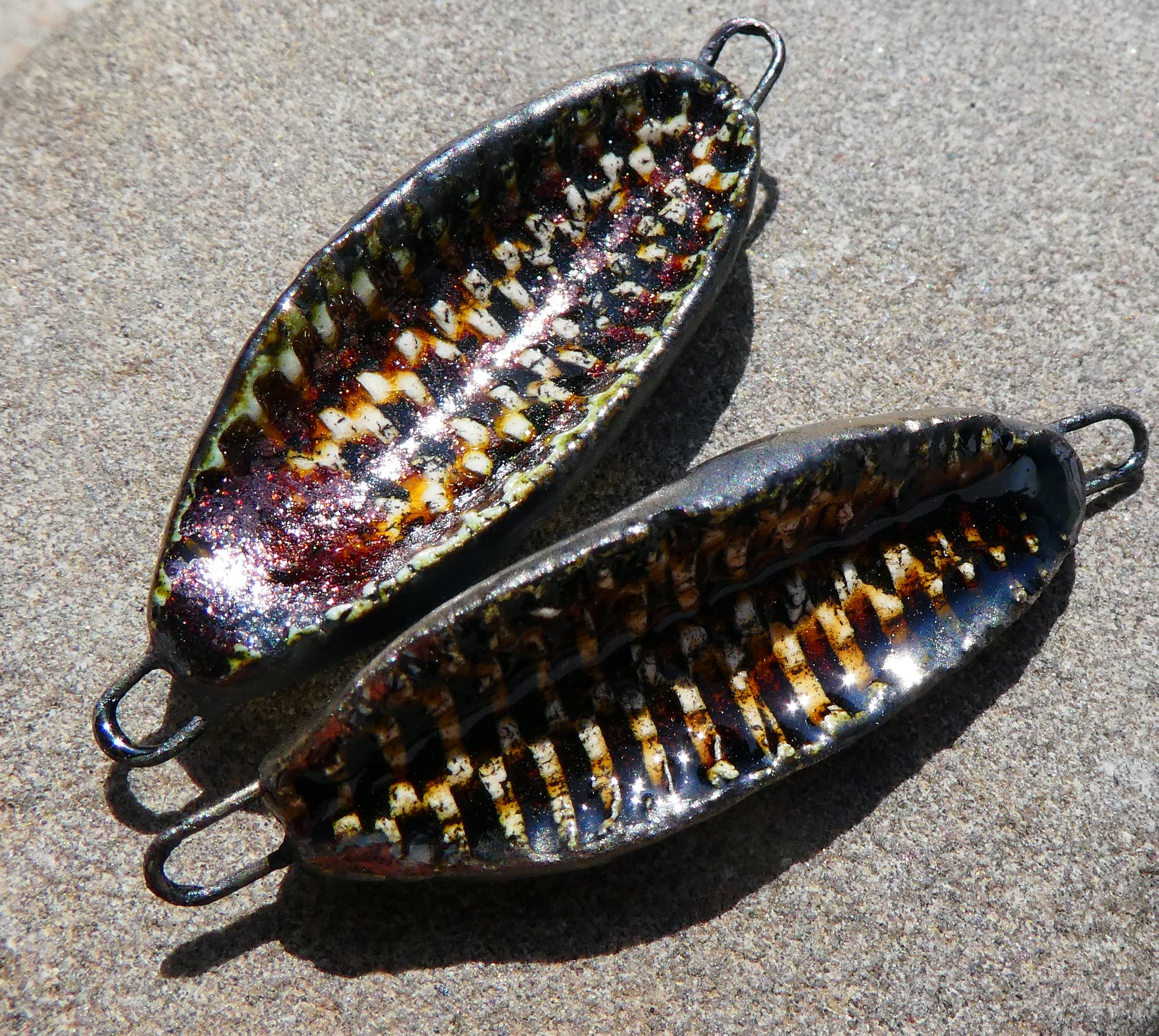 A pair of reed textured connectors.